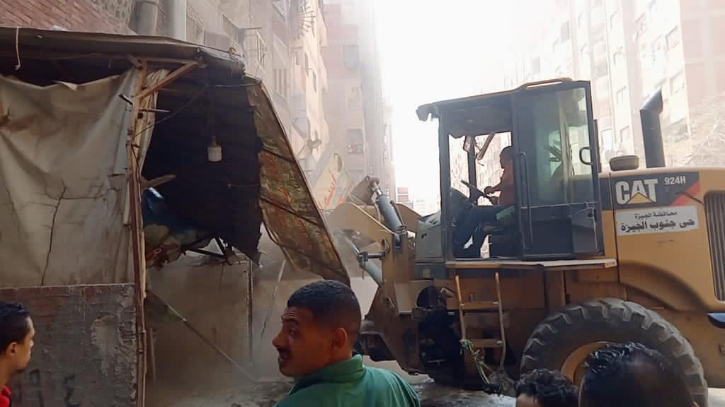 إزالة تعديات وتندات للمحال والمنشأت التجارية في بولاق بالجيزة | صور