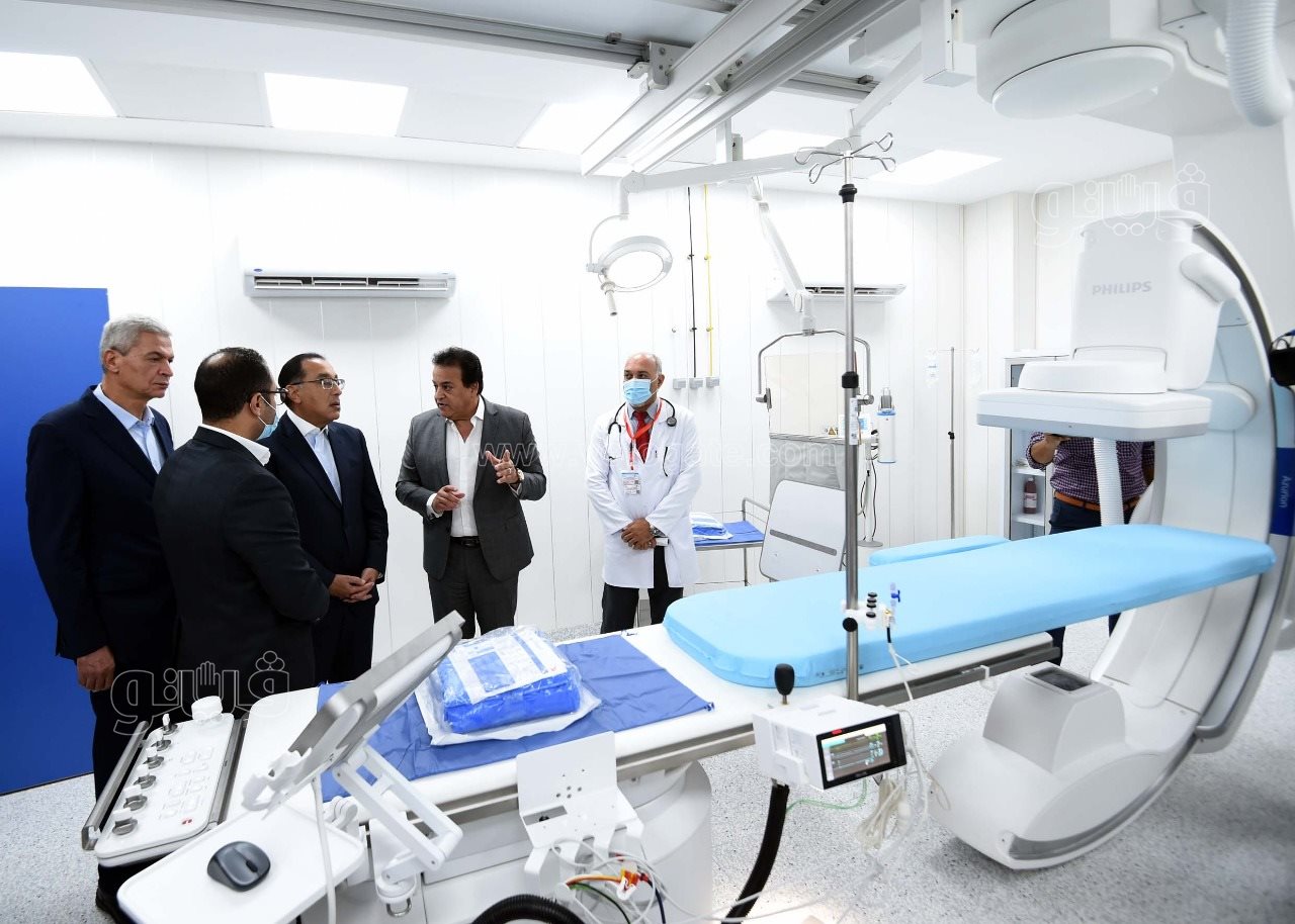 ثم افتتح رئيس الوزراء وحدة قسطرة القلب والقسطرة التداخلية بالمستشفى، التي تم تشغيلها مؤخرا بعد إمدادها مؤخرا بأحدث أجهزة القسطرة في العالم؛ وقال الدكتور خالد عبد الغفار: يتميز الجهاز الجديد باحتوائه على أحدث التقنيات المساعدة في التشخيص الدقيق، كما أنه مزود بتقنيات متقدمة مثل stent bost، و3D، وجودة فحص متقدمة مع أقل نسبة أشعة للمريض، كما يتمتع بالقدرة على تقديم أسرع خدمة لإنقاذ حياة المرضى؛ حيث يستخدم في علاج الحالات المتقدمة في أمراض القلب، إلى جانب قدرته الفائقة على استخدامات قسطرة المخ، والشرايين الطرفية، بجانب التعامل مع الجلطات القلبية والمُخية وحقن الأورام، إضافة إلى التعامل مع الجلطات الحادة بالقلب، مضيفا أن الجهاز يمكنه عمل قسطرة للمريض حتى وزن 275 كجم.