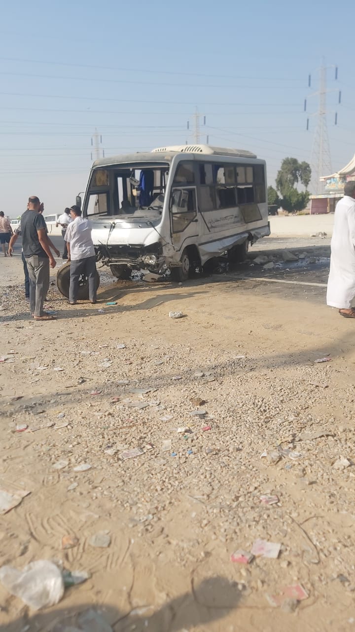 أصيب 11 شخصا في حادث تصادم سيارة ميني باص بالحاجز الخرساني للطريق بطريق "الإسماعيلية - السويس" الصحراوي وحديد أسفل كوبري أبو سلطان.