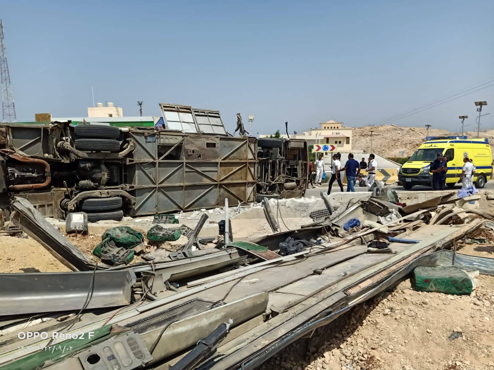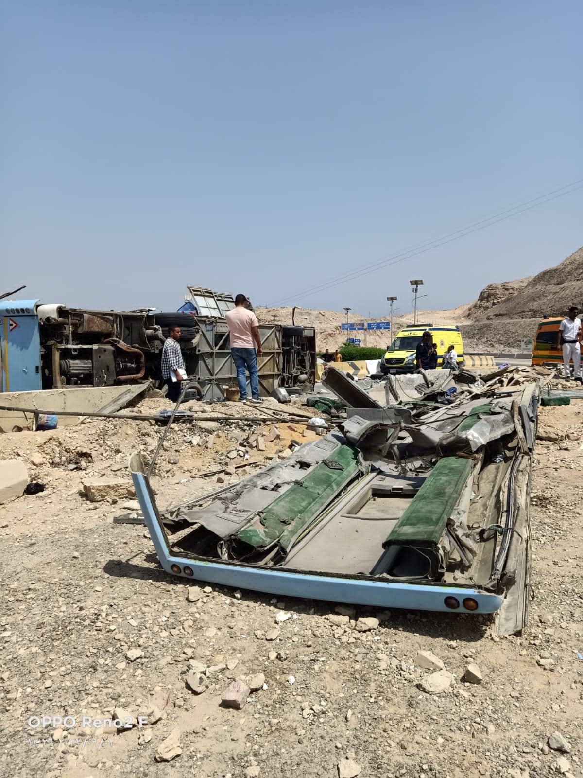 وحصلت فيتو على الصور الأولى لانقلاب الأتوبيس من موقع الحادث.