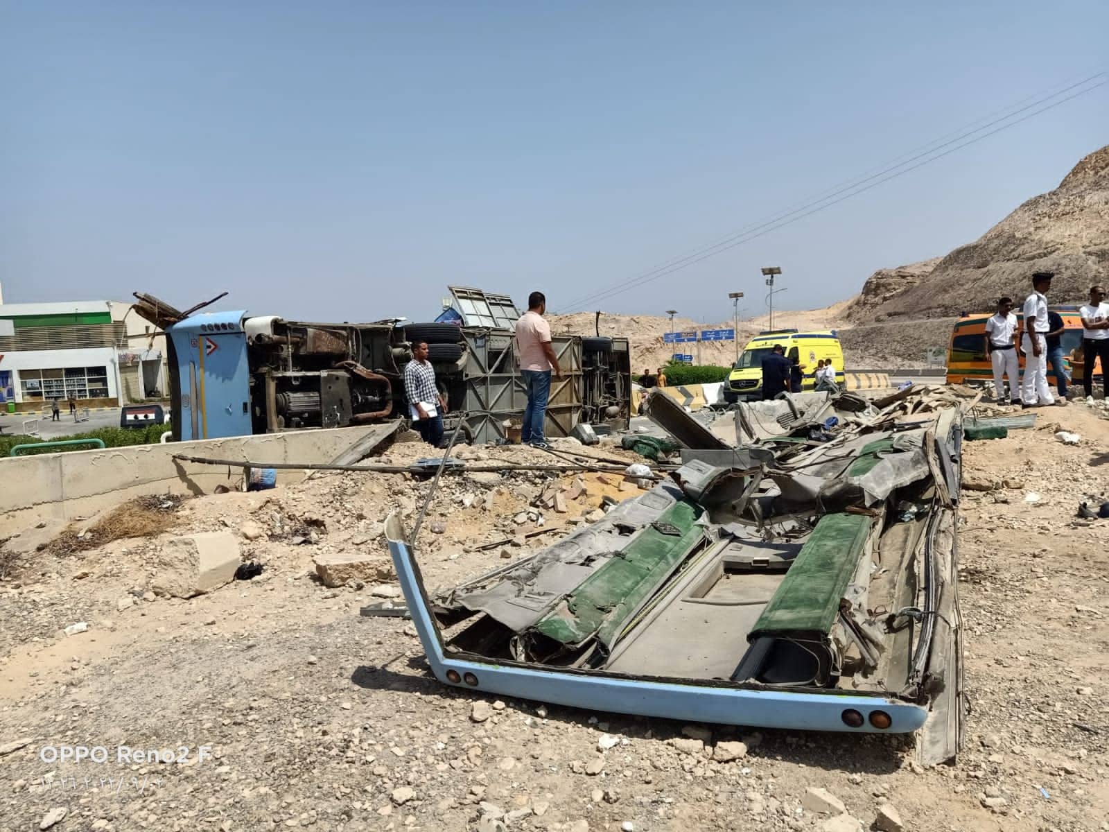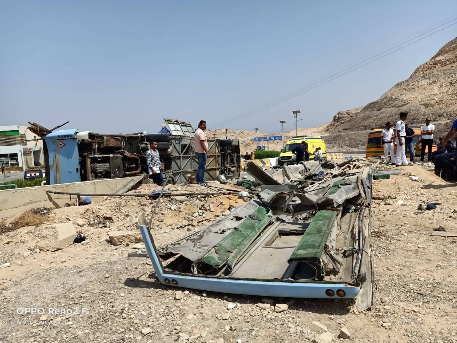 شهد طريق السويس اتجاه العين السخنة انقلاب أتوبيس مما أسفر عن ٢١ مصابا.
