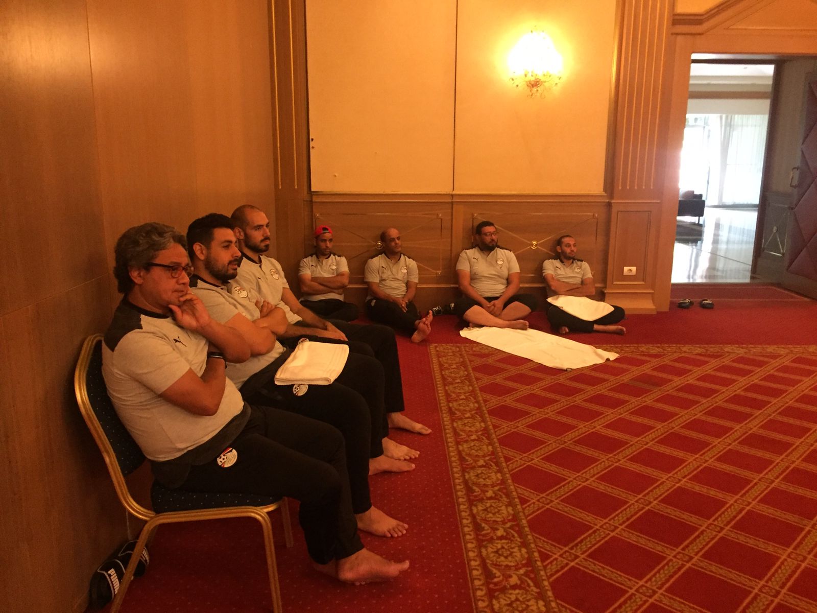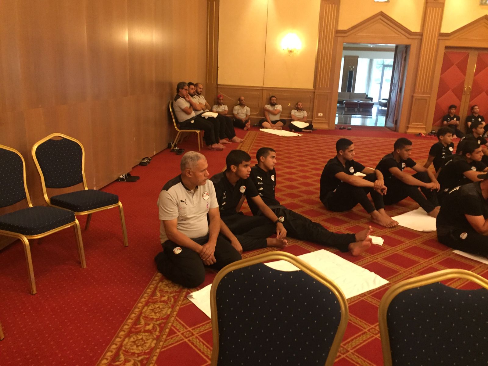 بعثة منتخب الناشئين تؤدي صلاة الجمعة بفندق الاقامة|صور