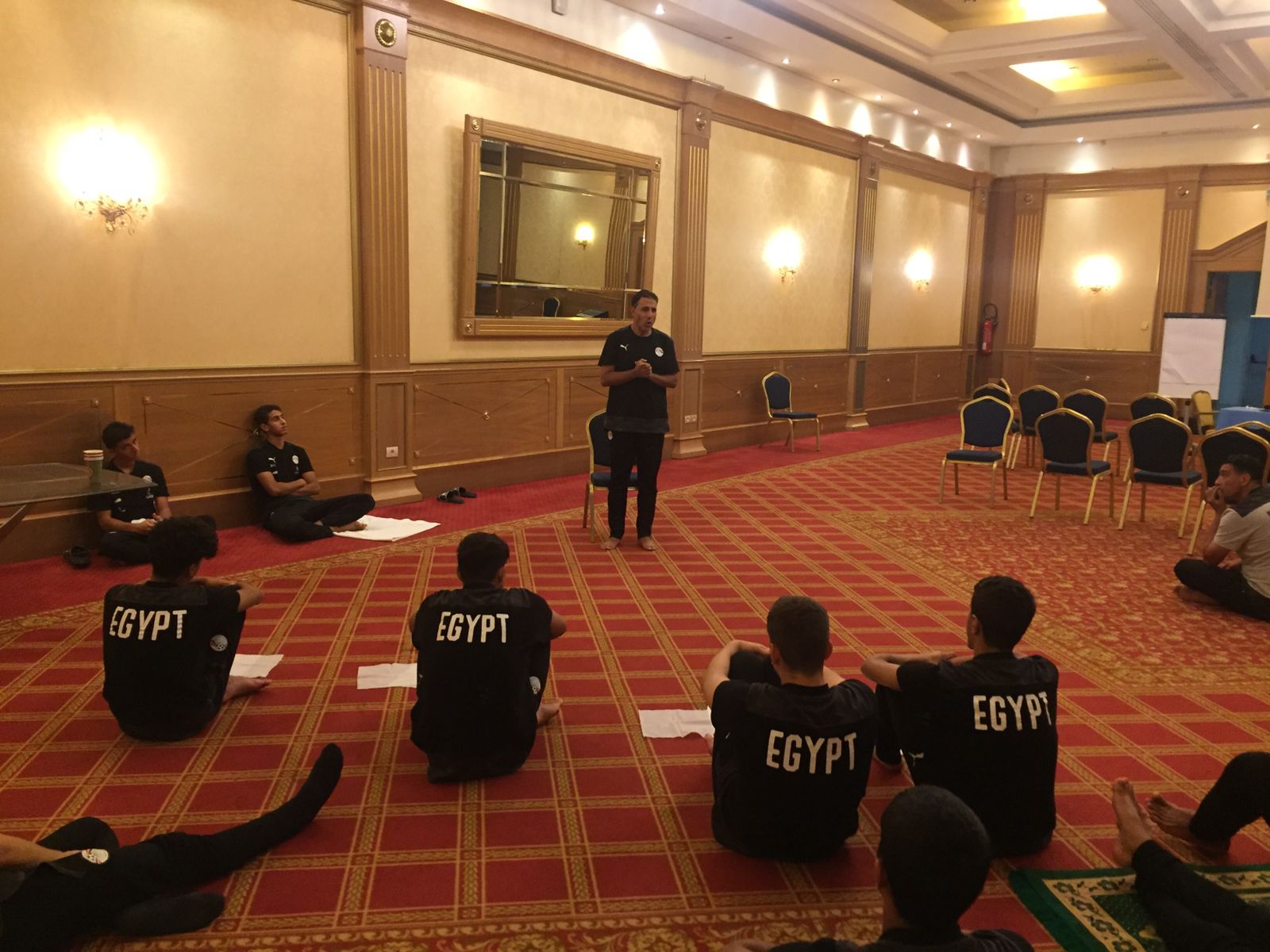 أدى منتخب الناشئين مواليد 2006 صلاة الجمعة بالفندق وألقى الدكتور إيهاب الكومي رئيس البعثة الخطبة ودارت حول أهمية التعاون والعمل الجماعي لتحقيق النجاح.