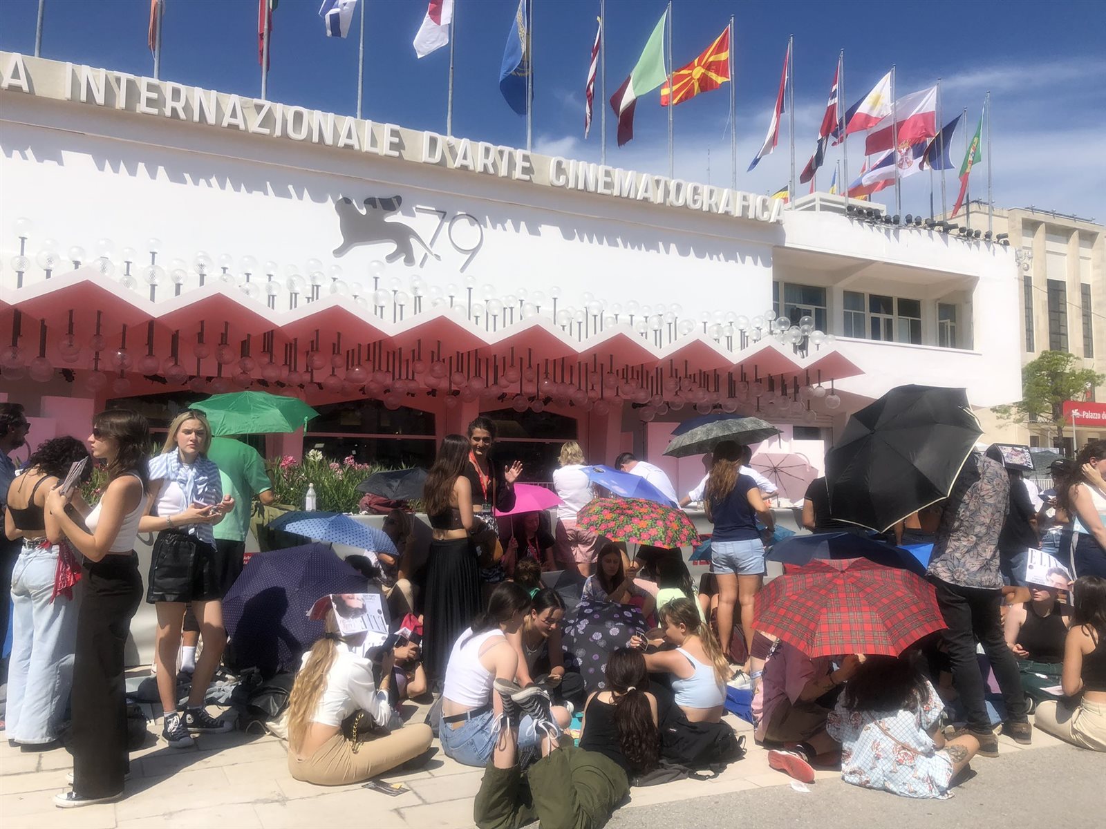 علي الرغم من حرارة الجو بسبب الموجة الحارة التي تضرب دول أوروبا في الوقت الحالي، إلا أن ذلك لم يمنع محبو تيموثي شالامي من التخييم أمام مقر مهرجان فينيسيا الدولي لرؤيته، أملا في الحصول على صورة بصحبته عندما يصل لاحقًا إلى السجادة الحمراء في مهرجان فينيسيا السينمائي، لحضور العرض العالمي الأول لفيلمه المشارك في المسابقة الرسمية للمهرجان Bones and All.