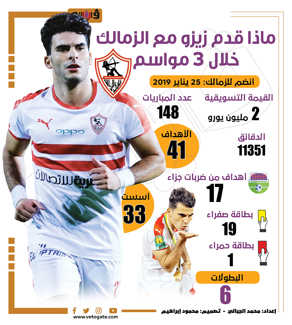 ماذا قدم زيزو مع الزمالك خلال 3 مواسم | إنفوجراف السبت 03/سبتمبر/2022 - 01:25 م 9/3/2022 1:25:25 PM زيزو إعداد محمد الجبالي شارك طباعة 18 حجم الخط شارك طباعة انفوجراف القيمة التسويقية بطاقة صفراء الزمالك للزمالك