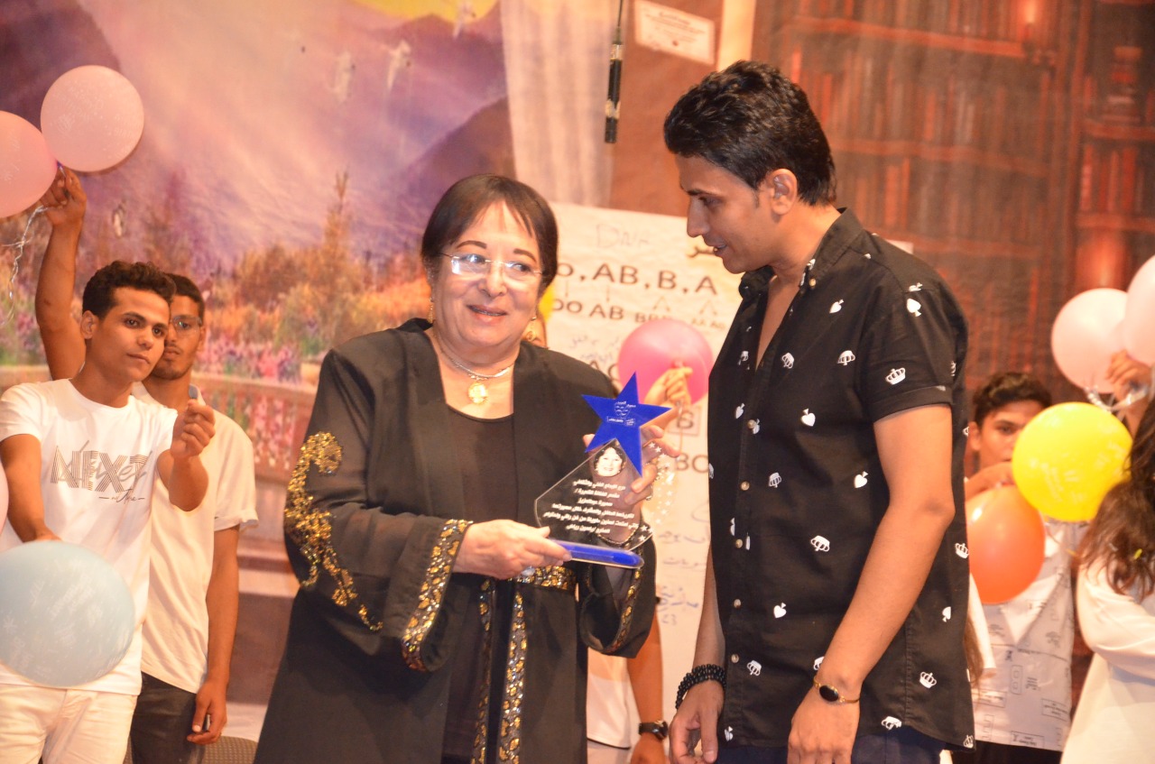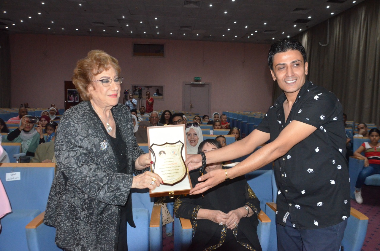 واعترافا بالجميل اهدى ابطال العرض بقيادة مخرجه درع الفريق للفنانتين، معربين عن سعادتهم لحضورهن وتشجيعهن لكل أبطال المسرحية.