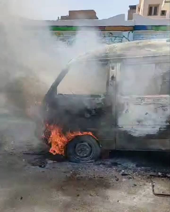 وبالفحص تبين تفحم السيارة بالكامل وجارى تفريغ كاميرات المراقبة وسؤال شهود العيان للوقوف على ملابسات الواقعة.