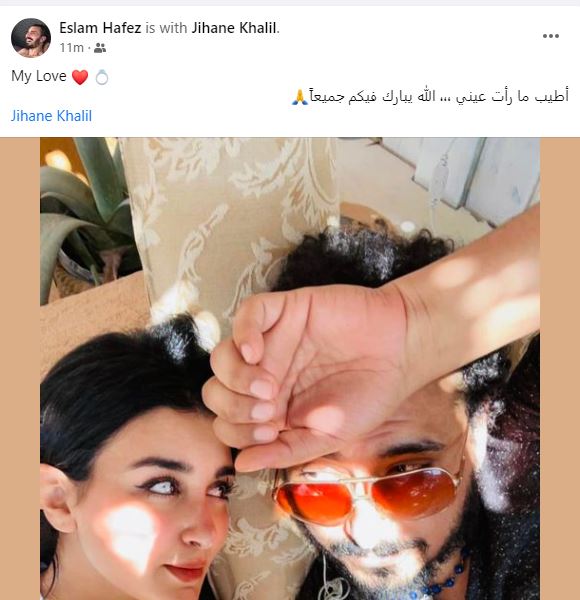 ونشر إسلام حافظ صورة تجمعه بجيهان خليل، وعلق عليها قائلًا: "حبيبتي.. أطيب ما رأت عيني.. الله يبارك فيكم جميعا".