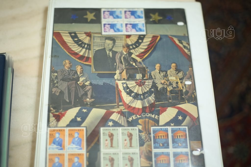 الدكتور علي عبدالمجيد استشاري النساء والتوليد وأخصائي الصحة العامة وعضو الجمعية المصرية لهواة جمع الطوابع، ظل من أربع إلى خمس سنوات يحاول أن يجمع هذه الطوابع من مختلف دول العالم، ففي العام الذي رحل فيه كينيدي حرصت العديد من الدول ومنها دول عربية كاليمن والأردن ودول إفريقية مثل بوروندي ورواندا على إصدار مجموعة من طوابع البريد التي تحمل صورة الرئيس جون كينيدي وتخلد مواقفه وإنجازاته خاصة في مجالي الفضاء وحقوق الإنسان، وكذلك بعض الصور لأبنائه، تعد من أكبر مجموعات الطوابع التي استغرقت وقتا طويلا من الدكتور علي لجمعها.