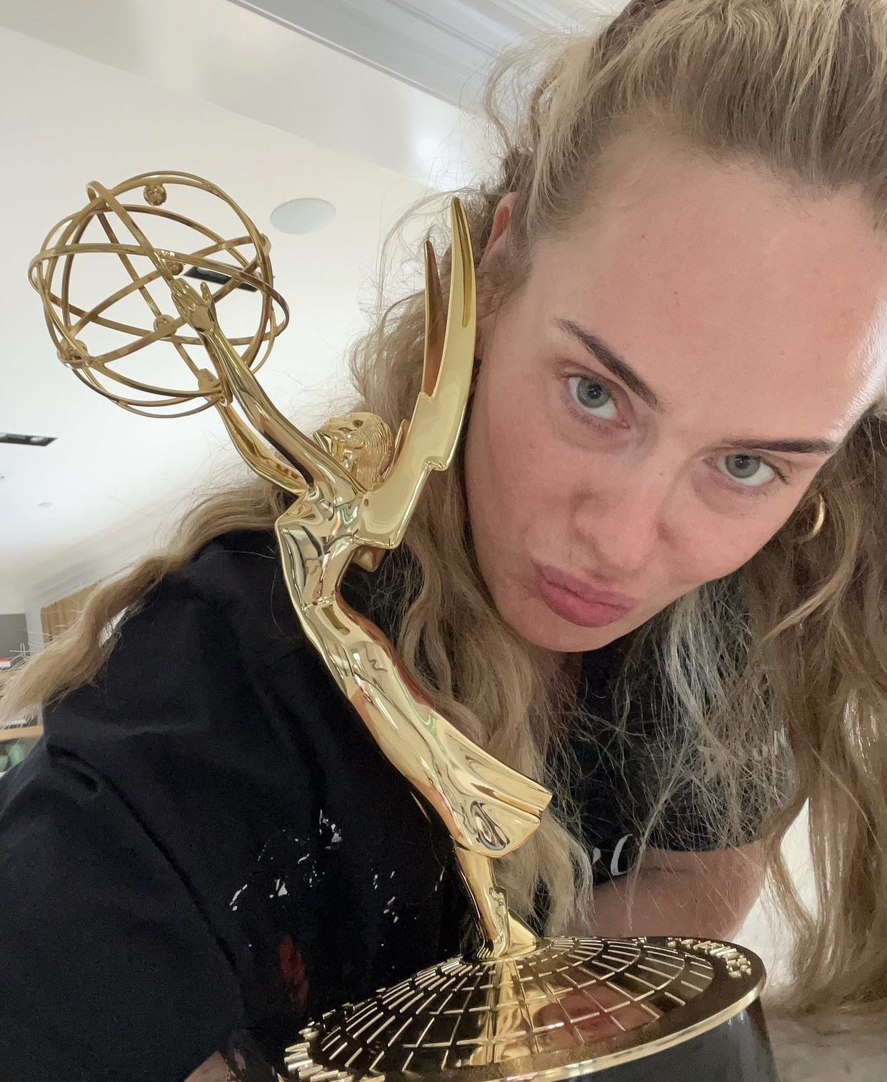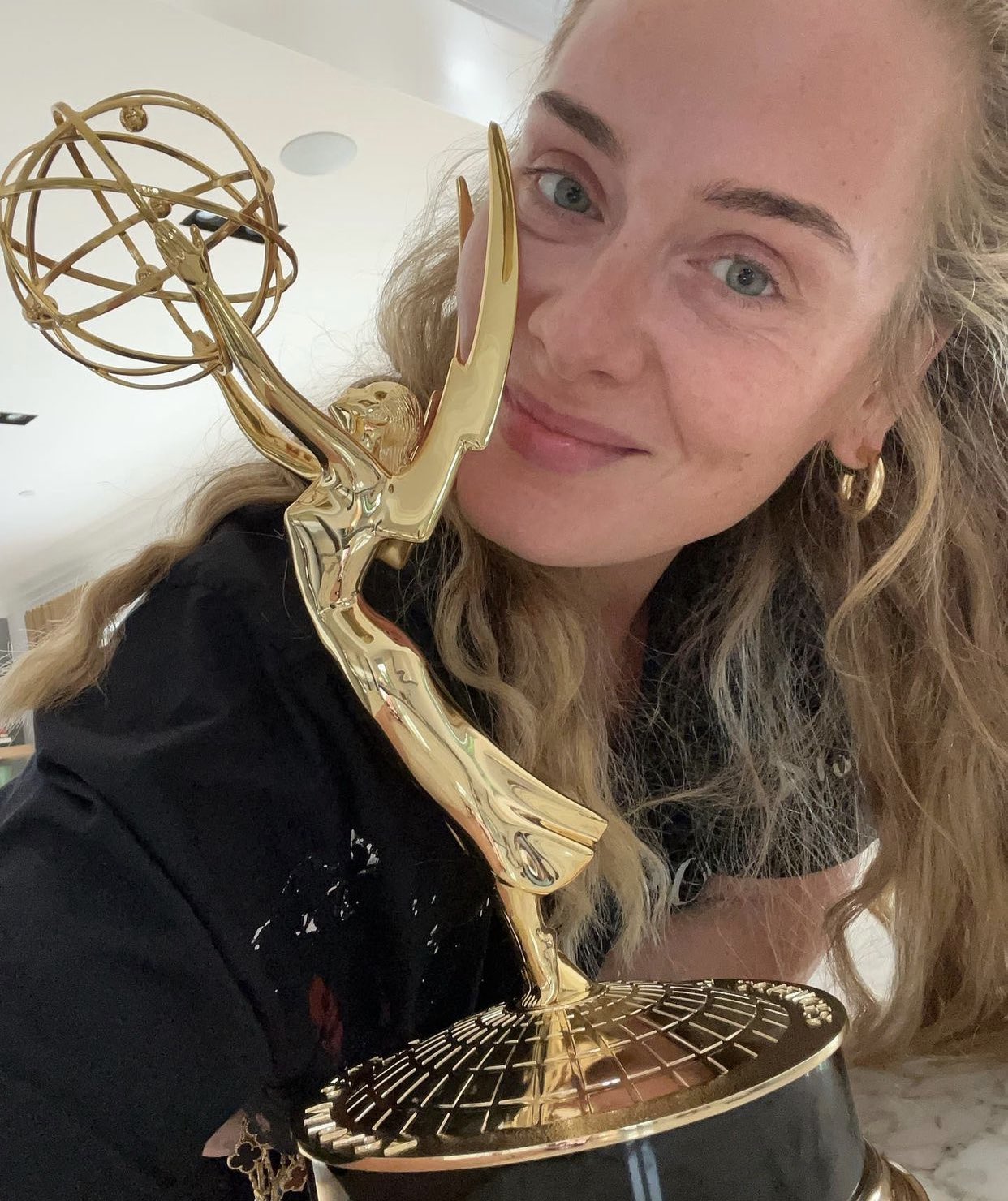 بعد فوزها بالإيمي.. أديل تستعرض جائزتها بصور مضحكة