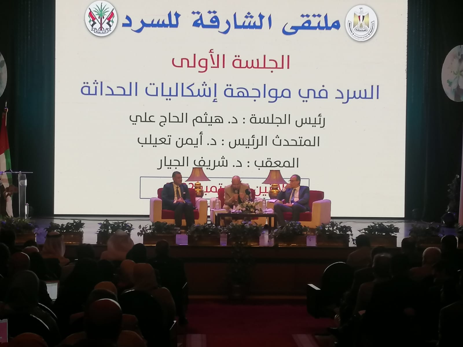 وبدأت الجلسة الافتتاحية بكلمة الدكتور هشام عزمي الأمين العام للمجلس الأعلى للثقافة الذي رحب بملتقى الشارقة للسرد وضيوفه، في القاهرة التي تعد، قِبلة المثقفين والمُبدعين العرب٬ وفي رحاب المجلس الأعلى للثقافة ودار الأوبرا المصرية، مرحبًا بالضيوف في مصر... حاضنة الثقافة العربية على مدار تاريخها... مصر التي تفتح ذراعيها دوما لكل مثقف ومفكر وفنان ومُبدع من كافة أرجاء الوطن العربي من أقصاه إلى أقصاه.