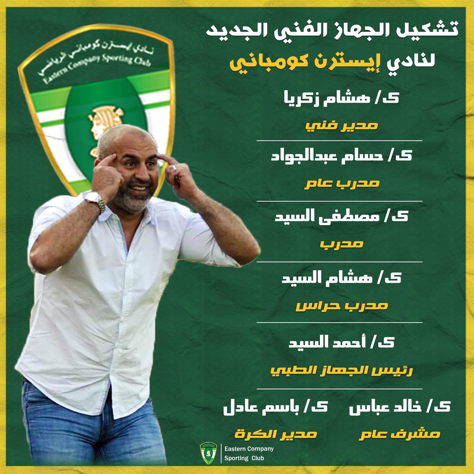 أعلن مجلس ادارة نادي إيسترن كومباني الرياضي برئاسة المهندس نصر عبدالعزيز تشكيل الجهاز الفني والاداري والطبي الجديد للفريق الأول لكرة القدم تمهيدا للمشاركة في مسابقة دوري القسم الثاني بعد هبوط الفريق رسميا ورحيل علاء عبدالعال المدير الفني.