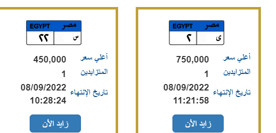 - سداد قيمة تأمين اللوحة عن طريق كارت الائتمان الخاص بطالب الخدمة، ويبدأ المزايدة مع الآخرين ويجب أن يكون المبلغ أعلى من القيمة الحالية للوحة بمقدار الحد الأدنى لرفع المزايدة على هذه اللوحة.