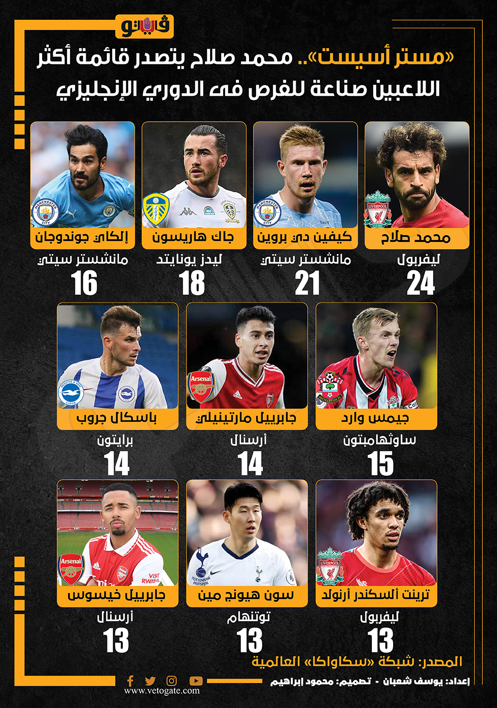 "مستر أسيست".. محمد صلاح يتصدر قائمة أكثر اللاعبين صناعة للفرص فى الدوري الإنجليزي | إنفوجراف الإثنين 05/سبتمبر/2022 - 08:18 م 9/5/2022 8:18:04 PM محمد صلاح يوسف شعبان شارك طباعة 18 حجم الخط شارك طباعة محمد صلاح فريق ليفربول الدوري الانجليزي كيفين دى بروين جاك هاريسون شبكة سكاواكا العالمية