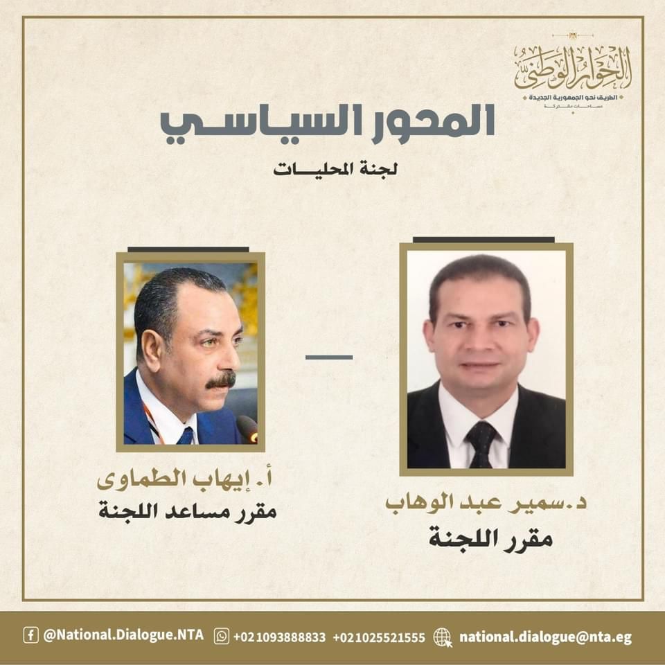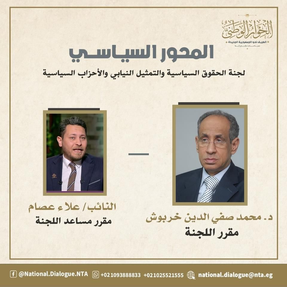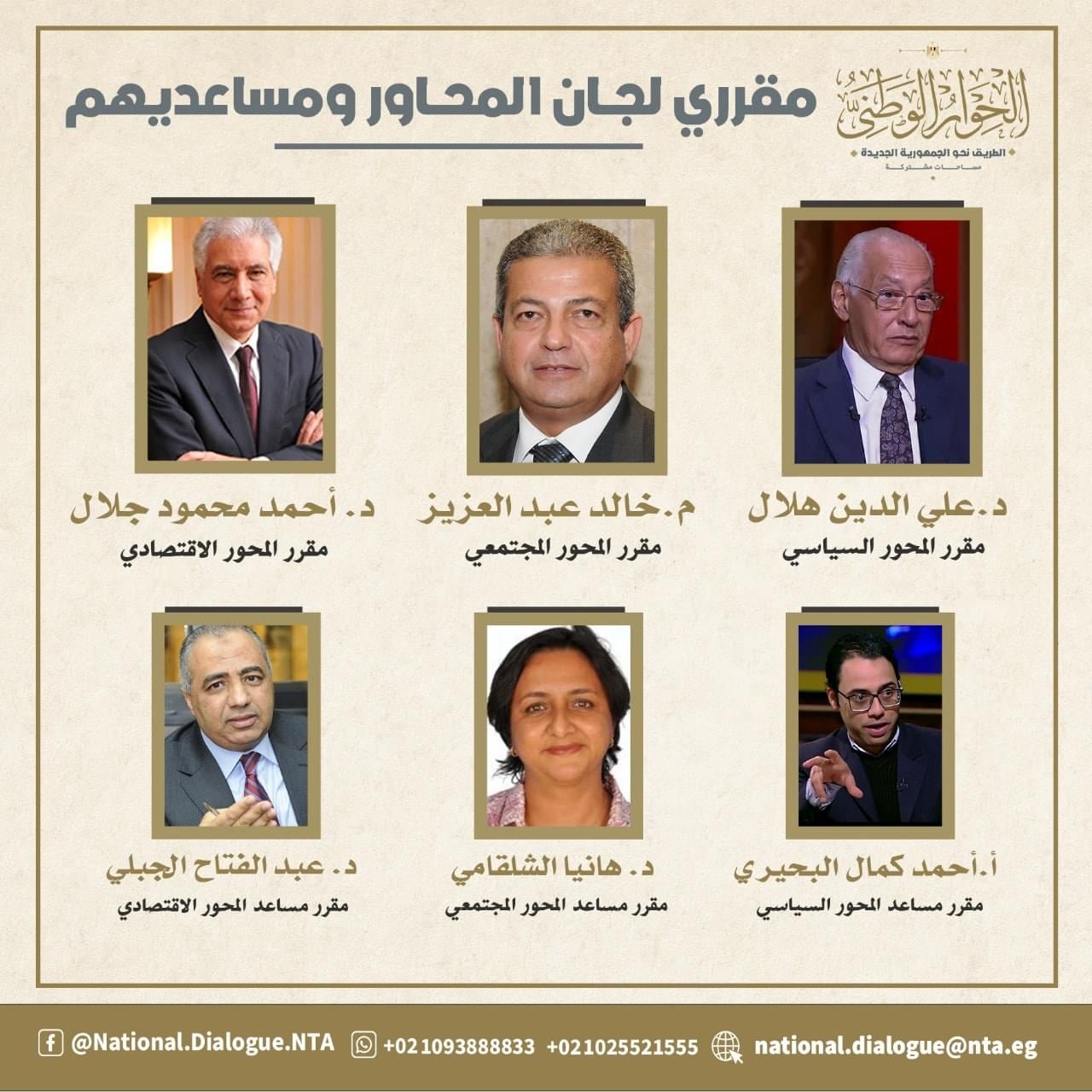 كما انتهى المجلس اليوم، أيضًا إلى اختيار 6 مرشحين للعمل مقررين للجان المحور السياسي، فتم التوافق على اختيار كل من الدكتورة نيفين مسعد (مقرر) وأحمد راغب (مقرر مساعد) للجنة حقوق الإنسان والحريات العامة، وكل من الدكتور محمد صفي الدين خربوش (مقرر) وعلاء عصام (مقرر مساعد) للجنة مباشرة الحقوق السياسية والتمثيل النيابي والأحزاب السياسية، بالإضافة إلى كل من سمير عبد الوهاب (مقرر) والنائب إيهاب الطماوي (مقرر مساعد) للجنة المحليات.
