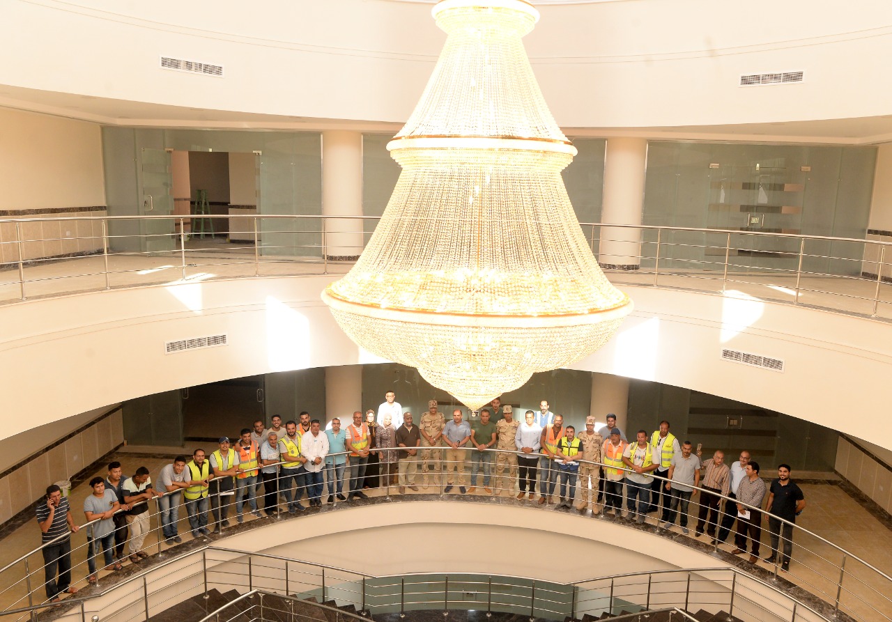 كما تفقد التجهيزات الخاصة للطاقم الأكاديمي والجهاز الإداري وكذلك المدرجات والقاعات الدراسية استعدادا لبدء العام الجامعي الأول لجامعة المنصورة الأهلية.