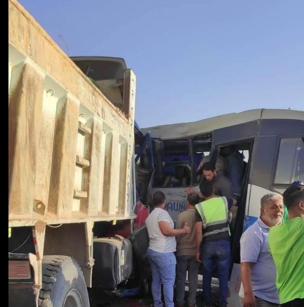 أصيب 28 عاملا، في حادث تصادم سيارة نقل بأتوبيس يستقله عمال إحدى الشركات بطريق "السويس - الأدبية"، وتم نقل المصابين إلى مستشفى السويس العام.