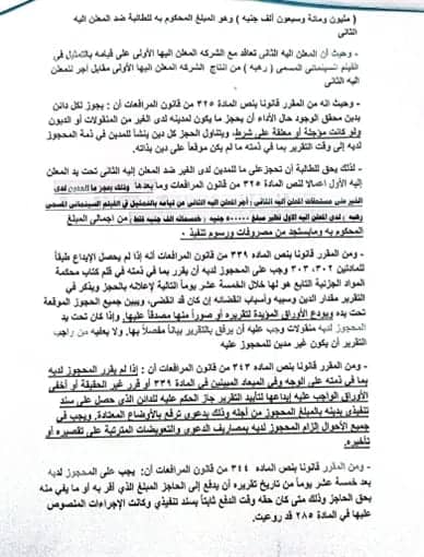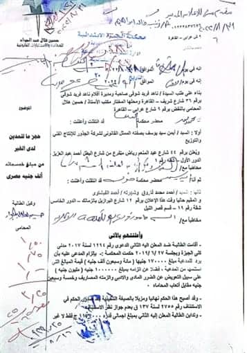 كما جاء الإنذار تنفيذًا للحكم النهائي المذيَّل بالصيغة التنفيذية الصادر للمنتجة ناهد فريد شوقي ضد أحمد الفيشاوي بإلزامه سداد مبلغ مليون ومائة وسبعين ألف جنيه في الدعوى رقم 1294 لسنة 2017 مدني كلي الجيزة، وبعد حصول المنتجة على حكم بالاستمرار في التنفيذ.