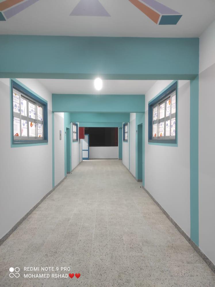 الأعمال المدنية: صيانة ودهان الواجهات، أعمال صيانة شاملة لدورات المياه المنفصلة والعلوية، صيانة أعمال النجارة بالمدرسة، تم دهان كافة الفراغات الداخلية