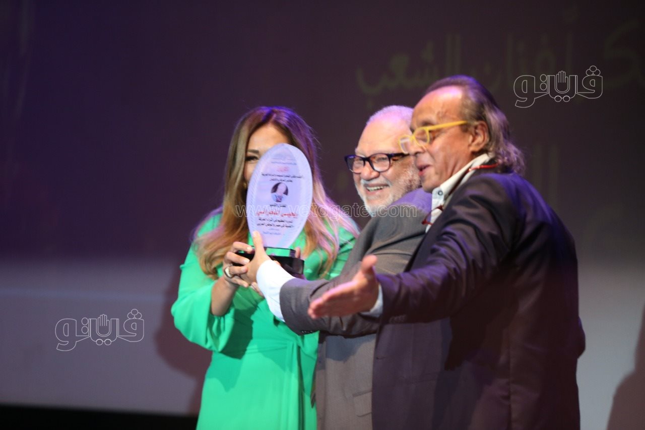 ليلى علوي تسلم يحيى الفخراني درع تكريم دار الأوبرا | فيديو وصور