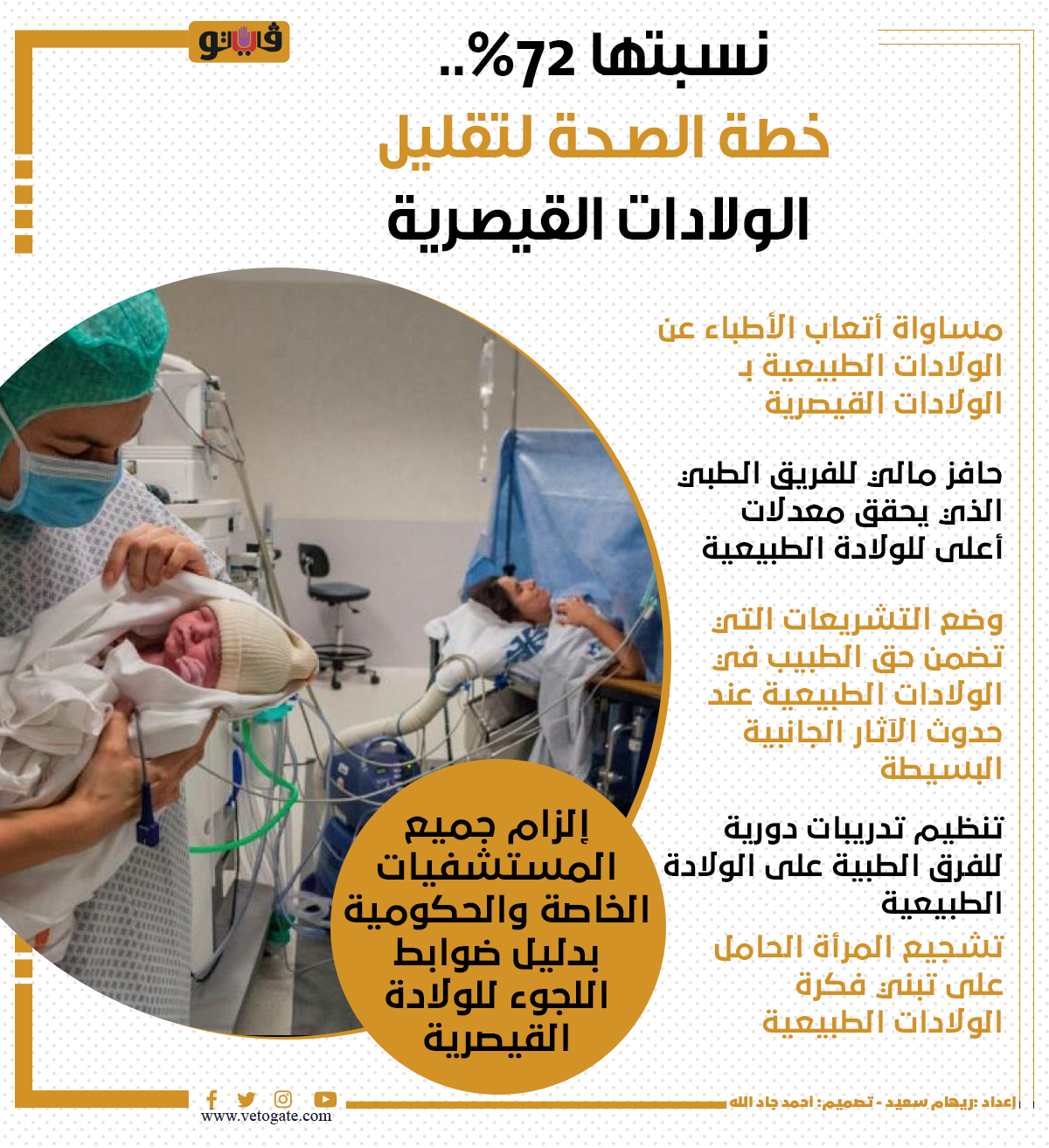نسبتها ٧٢%.. خطة الصحة لتقليل الولادات القيصرية | إنفوجراف الخميس 08/سبتمبر/2022 - 07:07 م 9/8/2022 7:07:19 PM مخاطر الولادة القيصرية ريهام سعيد شارك طباعة 18 حجم الخط شارك طباعة الولادات القيصرية الولادة الطبيعية ولادات القيصرية