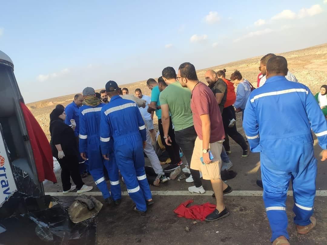 وكان مركز عمليات البحر الأحمر تلقى إخطارا يفيد بانقلاب أتوبيس نقل ركاب على طريق الزعفرانة / رأس غارب.