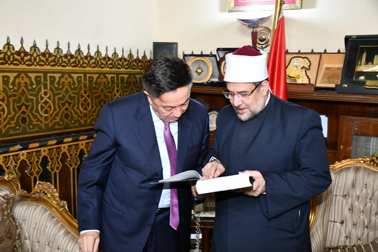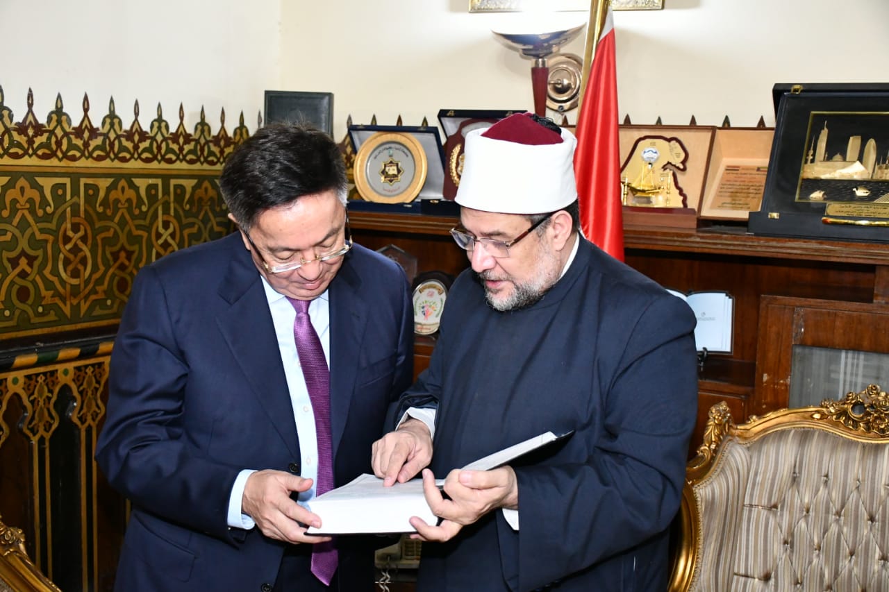 وأهدى وزير الأوقاف السفير خيرات لاما شريف سفير كازاخستان بالقاهرة نسخة من كتاب "المنتخب" في تفسير معاني القرآن الكريم، وأثنى السفير على هذا التفسير الميسر.