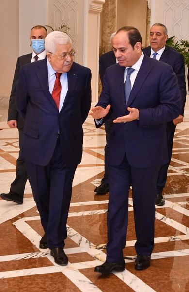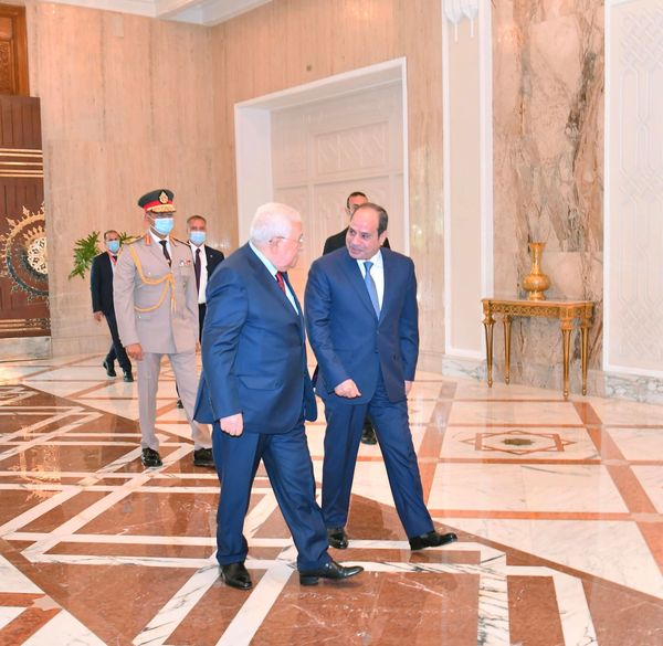 وقد رحب الرئيس بأخيه الرئيس محمود عباس، مؤكدًا استمرار مصر في تقديم كل الدعم الممكن للقضية الفلسطينية، بما يضمن تحقيق التطلعات المشروعة للشعب الفلسطيني الشقيق وفق الثوابت القائمة على مبدأ حل الدولتين وإقامة الدولة الفلسطينية المستقلة على حدود ١٩٦٧ وعاصمتها القدس الشرقية، ومشددًاعلى أهمية تكاتف كافة الجهود خلال المرحلة الحالية من أجل دعم الموقف الفلسطيني والحفاظ على التهدئة، خاصةً في قطاع غزة.