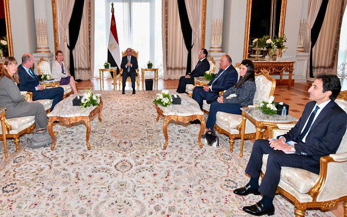 كما استقبل الرئيس عبد الفتاح السيسي أوديل رينو باسو، رئيس البنك الأوروبي لإعادة الإعمار والتنمية، وذلك بحضور الدكتور مصطفى مدبولي رئيس مجلس الوزراء وسامح شكرى وزير الخارجية والدكتورة رانيا المشاط وزيرة التعاون الدولى.
