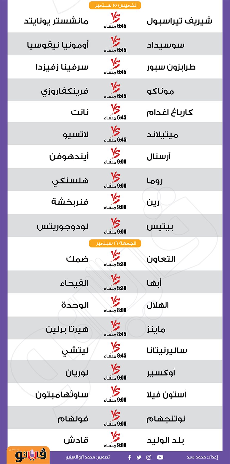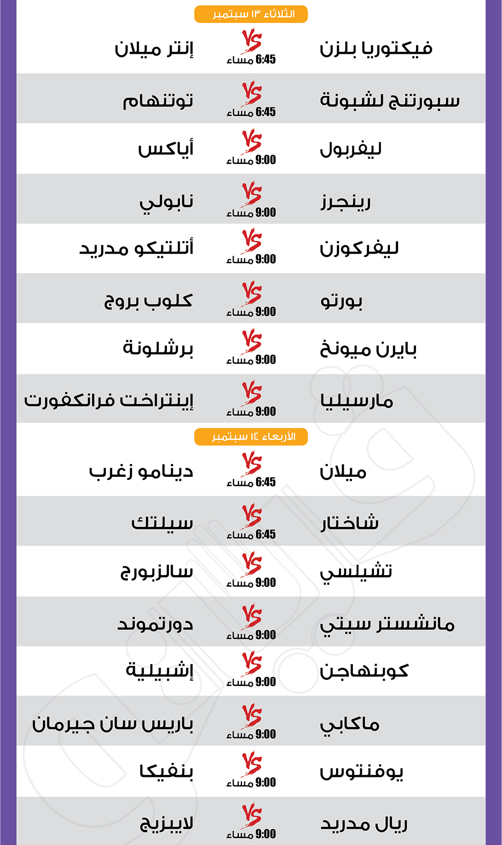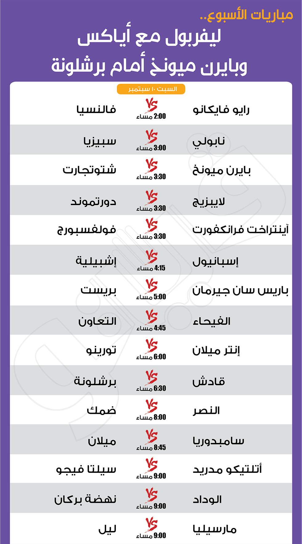 مباريات الأسبوع.. ليفربول مع أياكس وبايرن ميونخ أمام برشلونة | إنفوجراف الجمعة 09/سبتمبر/2022 - 07:40 م 9/9/2022 7:40:24 PM برشلونة وبايرن ميونخ محمد سيد شارك طباعة 18 حجم الخط شارك طباعة باريس سان جيرمان برشلونة بايرن ميونخ ليفربول ريال مدريد أياكس طرابزون سبور طرابزون نانت