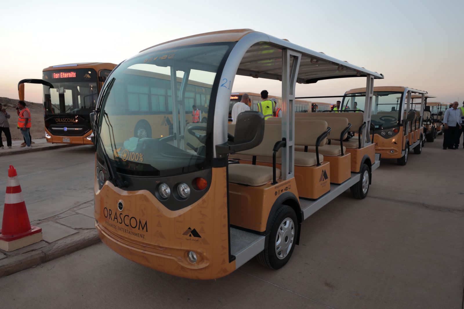 وبدأ التشغيل التجريبي لأول مجموعة من منظومة الحافلات والسيارات الكهربائية الصديقة للبيئة، وساحة الانتظار بمحطة مركز الزوار والتي تسع لما يقرب من 1000 سيارة وحافلة بهدف خدمة زائري منطقة بأهرامات الجيزة، والذين سوف يتمتعون بتجربة سياحية متميزة حيث يمكنهم مشاهدة المواقع الأثرية المختلفة بالمنطقة، عبر هذه الحافلات والسيارات الكهربائية، والتي تأخذهم في جولة بمسار منطقة الزيارة من خلال 7 محطات رئيسية لتبدأ من محطة مركز الزوار مرورًا بمحطة بانوراما 1، ثم محطة منكاورع ومحطة خفرع ثم محطة خوفو، ثم محطة أبو الهول، لتنتهي عند محطة بانوراما ٤ قبل العودة لمركز الزوار.