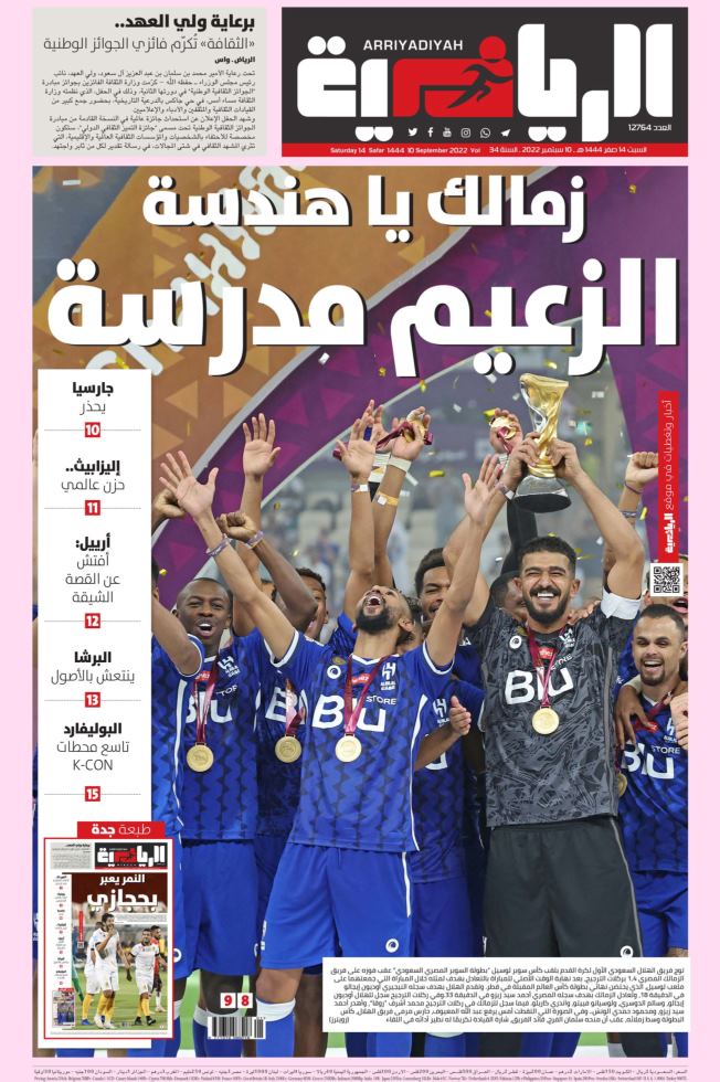 احتفلت صحيفة الرياضية السعودية بتتويج الهلال بلقب كاس سوبر لوسيل على حساب الزمالك بركلات الترجيح.