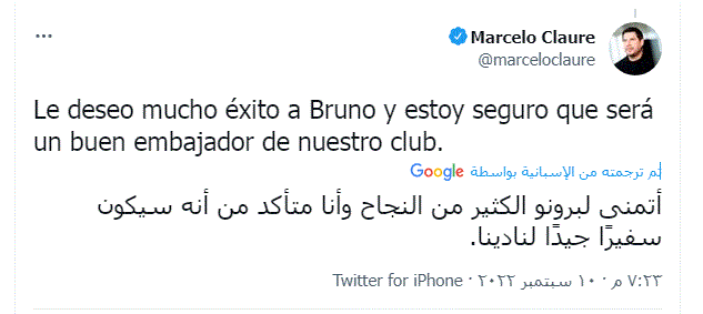يذكر أنه رغم إعلان الفريق البوليفي رحيل برونو للأهلي بشكل رسمي، لكن الأحمر لم يعلن بعد عن الصفقة عبر منصاته الرسمية كالمعتاد.