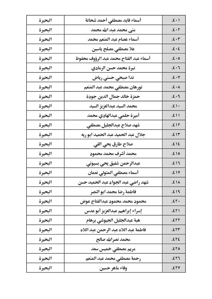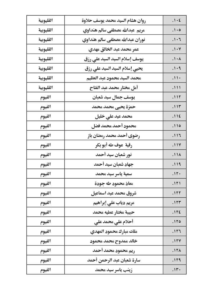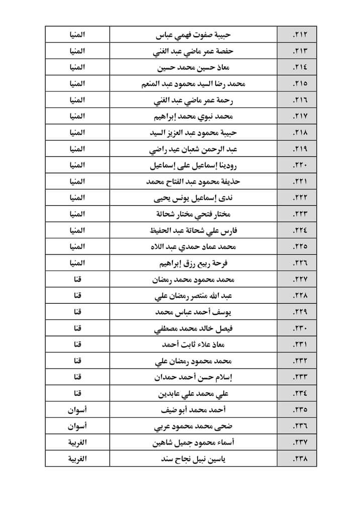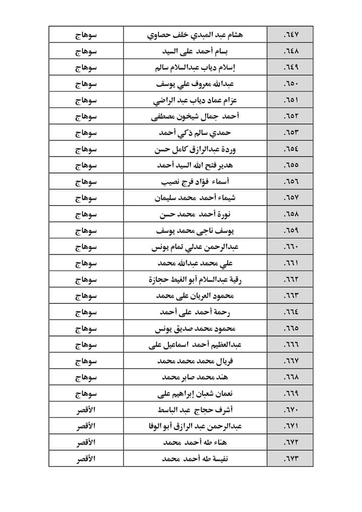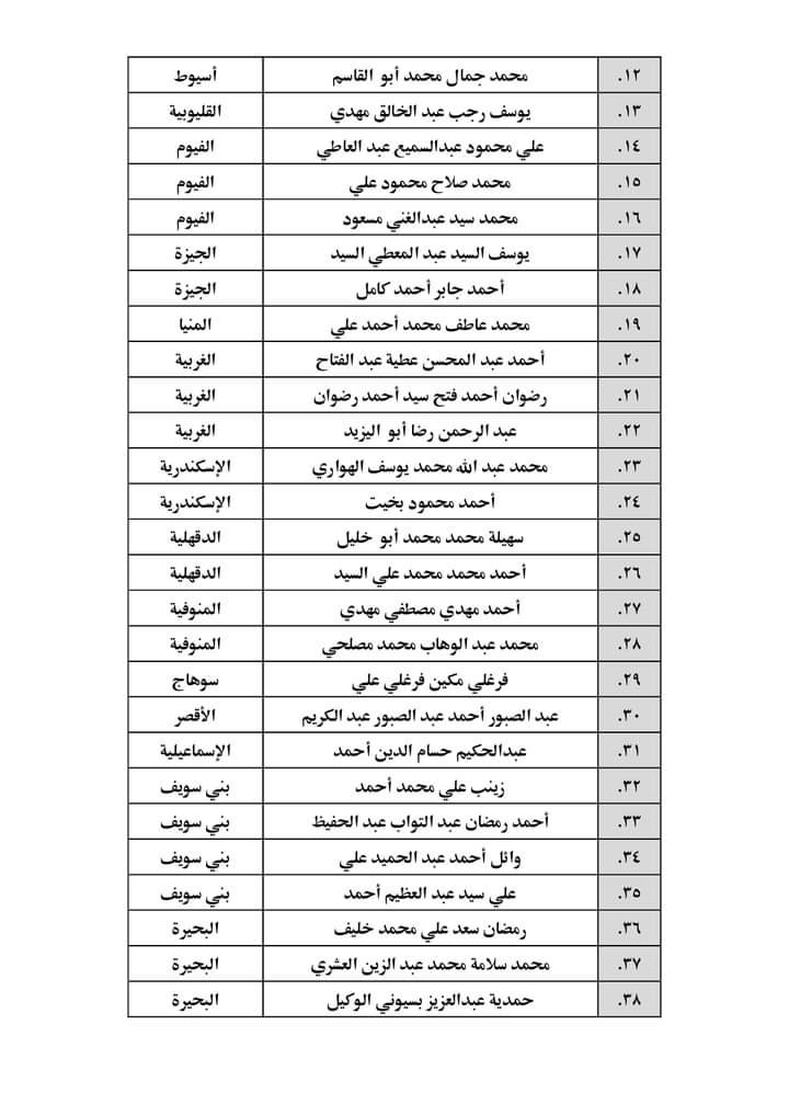 أعلنت وزارة الأوقاف أسماء من لهم الحق في التصفية الأولية للمسابقة المحلية للقرآن الكريم بالمديريات الإقليمية، مع التأكيد على أن يكون جميع المتسابقين مستوفين للشروط،وذلك على النحو التالي: