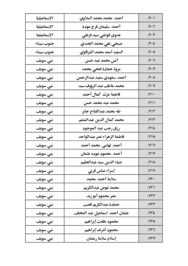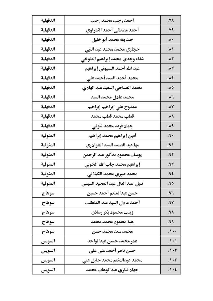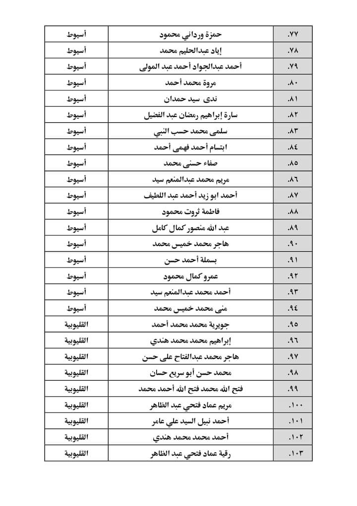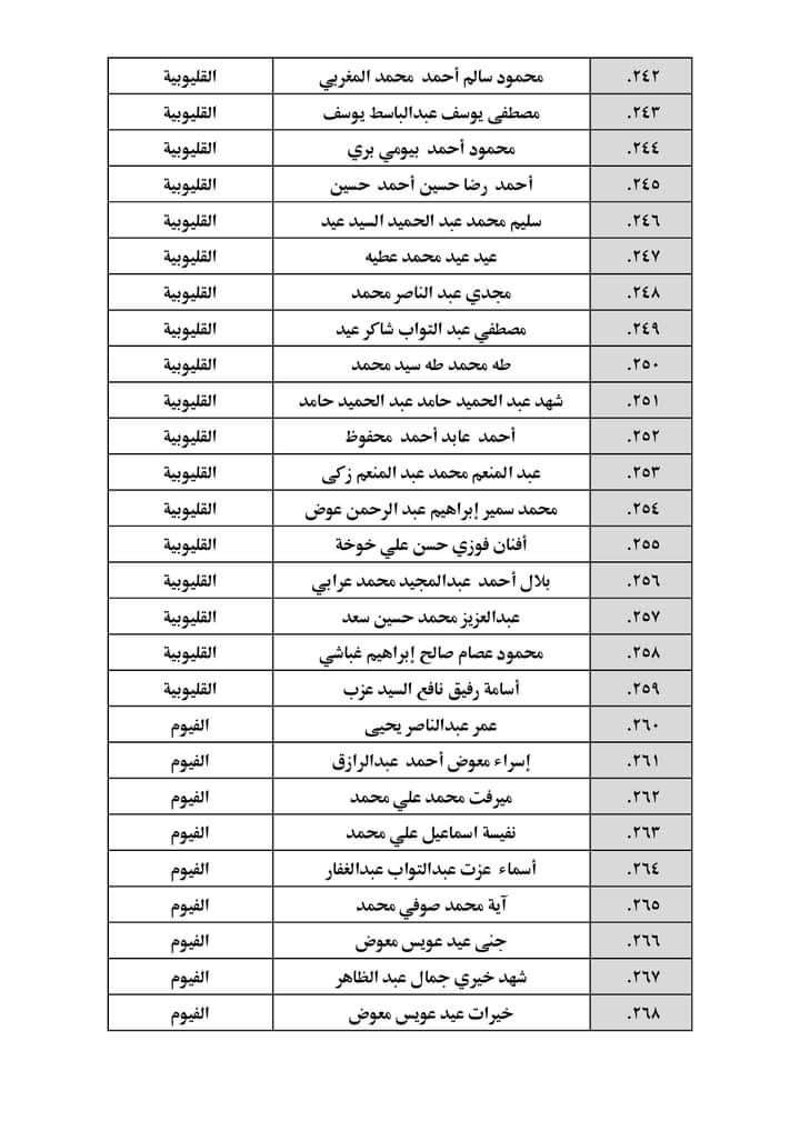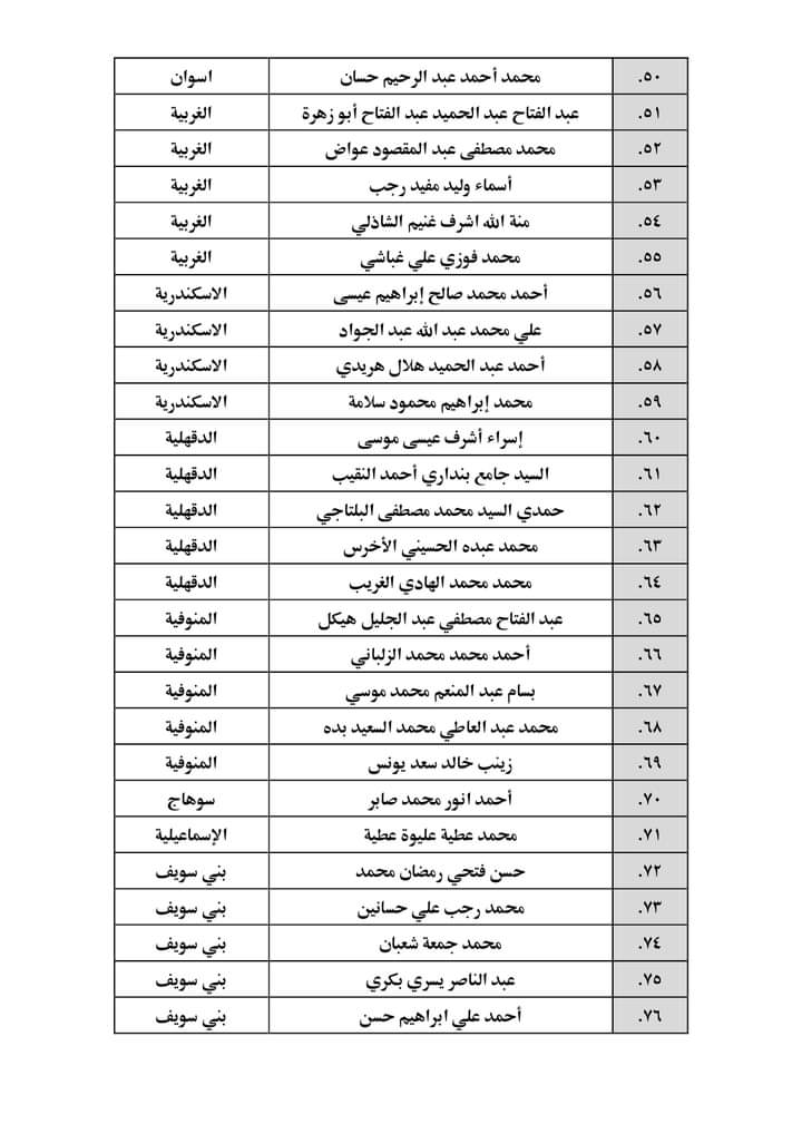 أعلنت وزارة الأوقاف أسماء من لهم الحق في التصفية الأولية للمسابقة المحلية للقرآن الكريم بالمديريات الإقليمية، مع التأكيد على أن يكون جميع المتسابقين مستوفين للشروط،وذلك على النحو التالي: