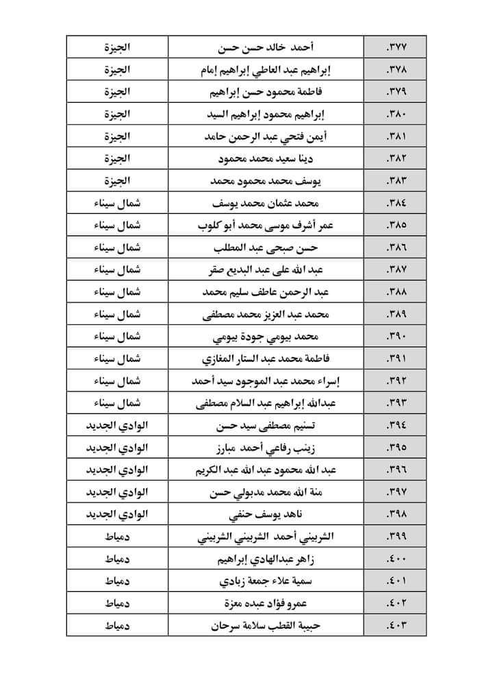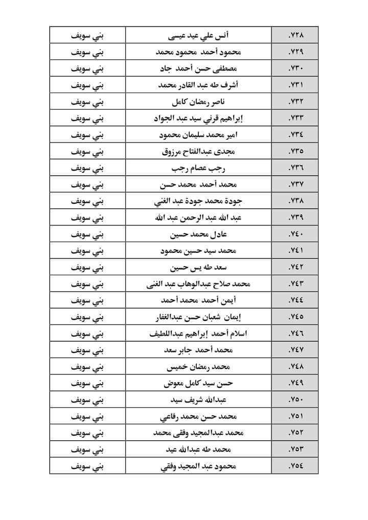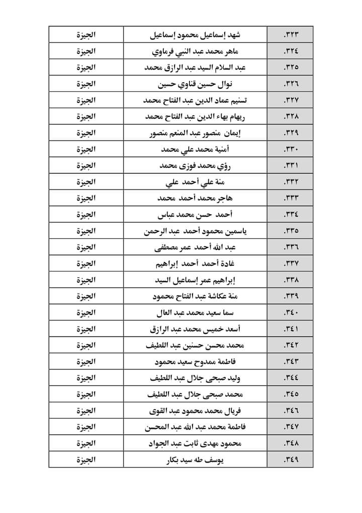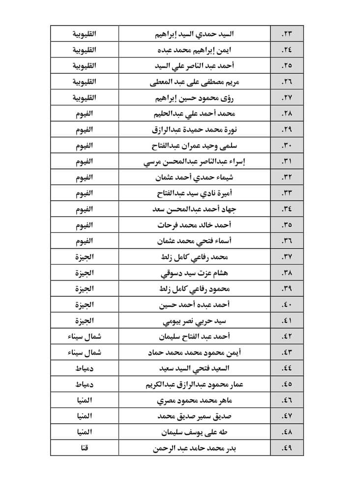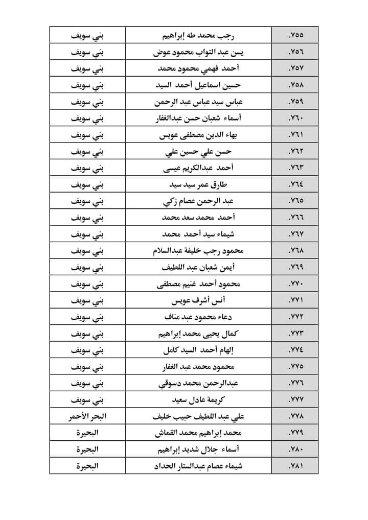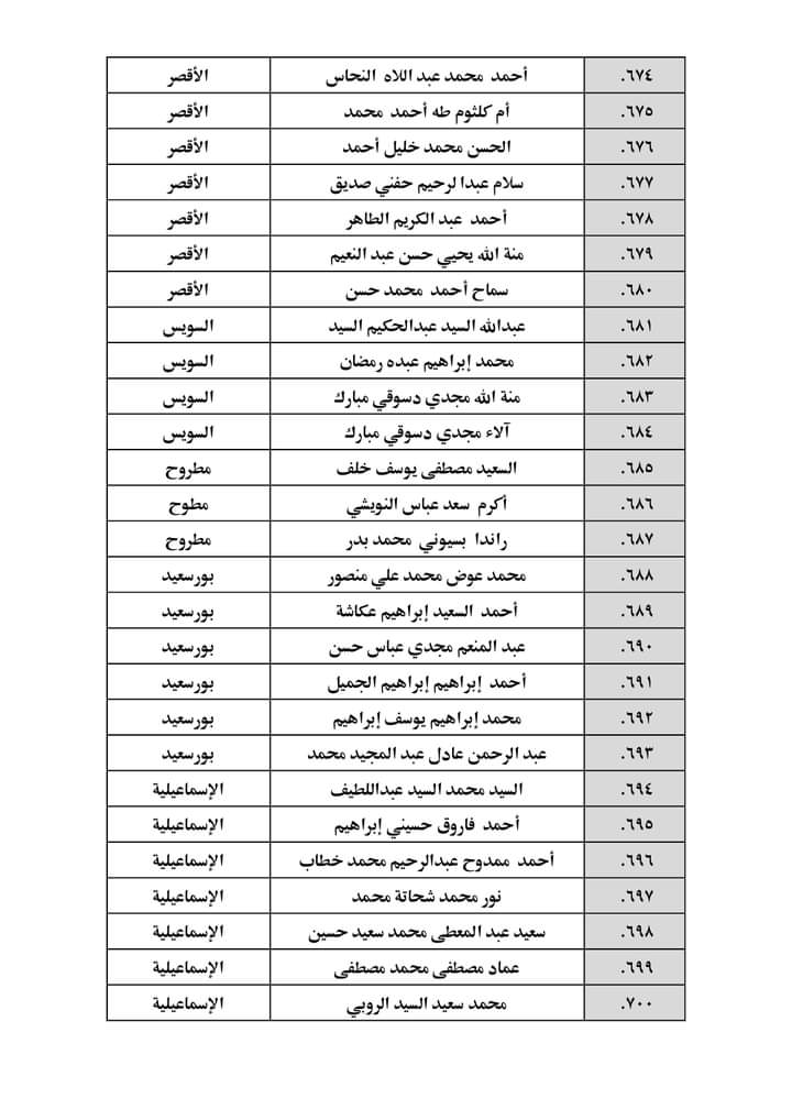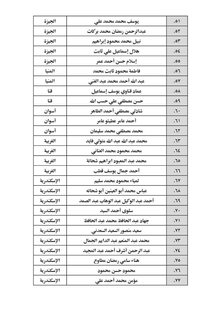 أولًا: الفرع الأول: حفظ القرآن الكريم كاملا وفهم معانيه ومقاصده العامة لأصحاب الصوت الحسن من الجنسين بشرط ألا يزيد السن عن (45) عامًا، وعددهم (857) متسابقًا، وتكون اختباراتهم بالمديريات يوم الأحد الموافق 18 / 9 / 2022م وهم: