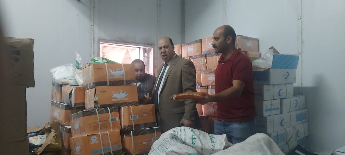 ضبط نصف طن لحوم ودواجن وأسماك مجمدة فاسدة داخل ثلاجة أغذية بطنطا|صور