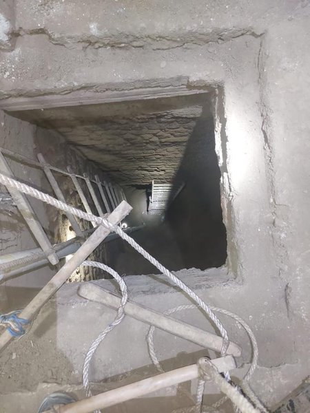 وعقب تقنين الإجراءات تم استهدافه بمسكنه وأمكن ضبطه وعُثر على حفرة بعمق ١٠ أمتار تقريبًا تنتهي بسرداب به جدار من الحجر الجيري، كما تم ضبط الأدوات المستخدمة في عملية الحفر.