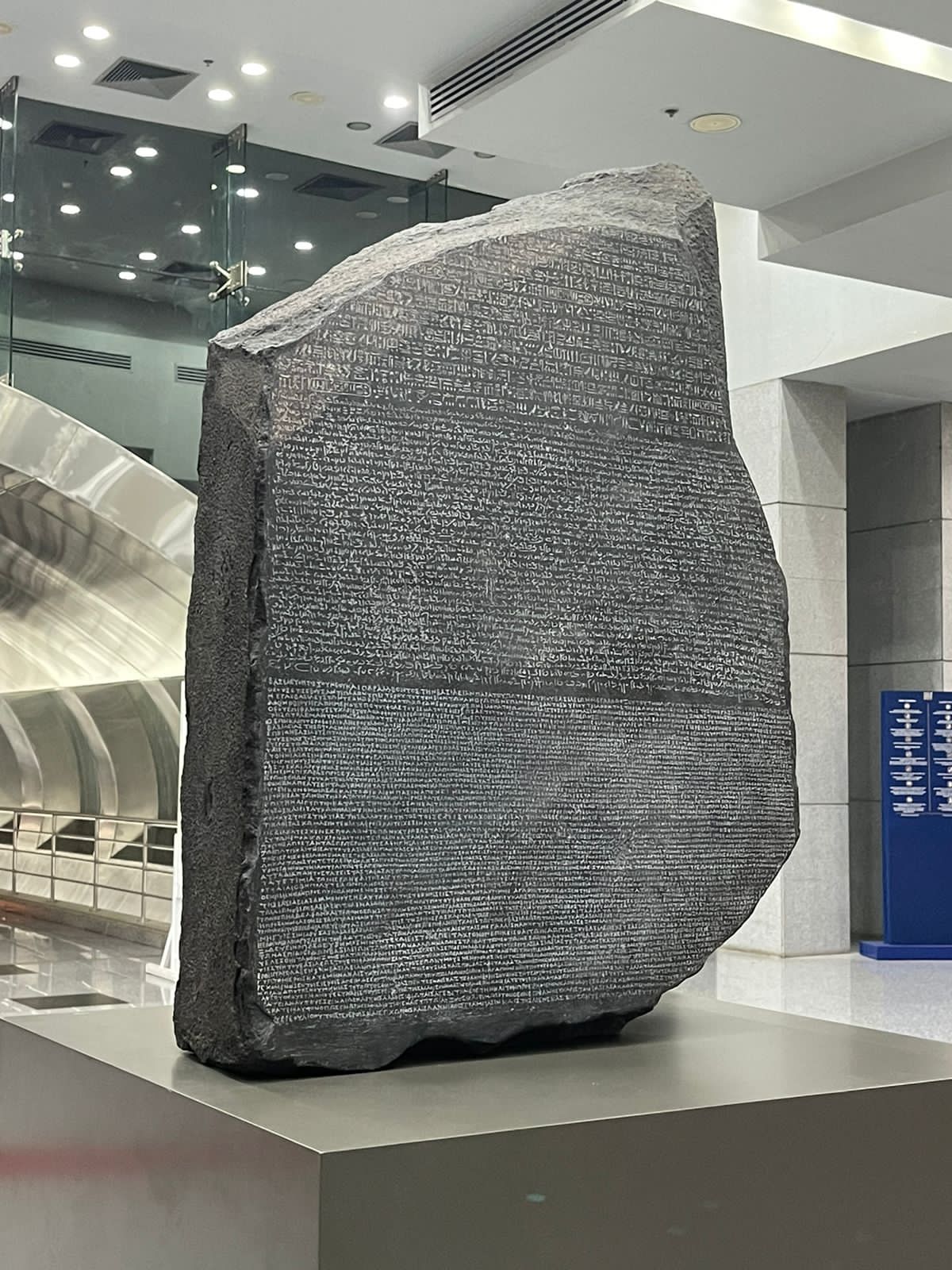 وأشارت إلى أن المتحف يعرض حاليًا ولأول المرة نسخة طبق الأصل من حجر رشيد لإتاحة الفرصة لزائري المتحف التعرف على قصة اكتشافه، والقيمة الأثرية والتاريخية لحجر رشيد كأحد المفاتيح الرئيسية التي ساعدت على فك رموز اللغة المصرية القديمة ونشأة علم الآثار المصرية.