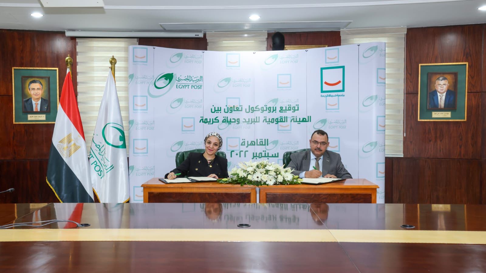 قام بتوقيع البروتوكول كل من عبده علوان نائب رئيس مجلس إدارة البريد المصري لشئون المناطق البريدية والسيدة عهود وافي نائب رئيس مجلس أمناء مؤسسة حياة كريمة، وذلك بحضور القيادات التنفيذية بالبريد المصري ووفد من مؤسسة حياة كريمة يضم الدكتورة ندى الدمياطي رئيس القطاع الطبي والاستاذة سيمون ناصر والأستاذ أحمد أمجد رؤساء القطاعات بمؤسسة حياة كريمة.