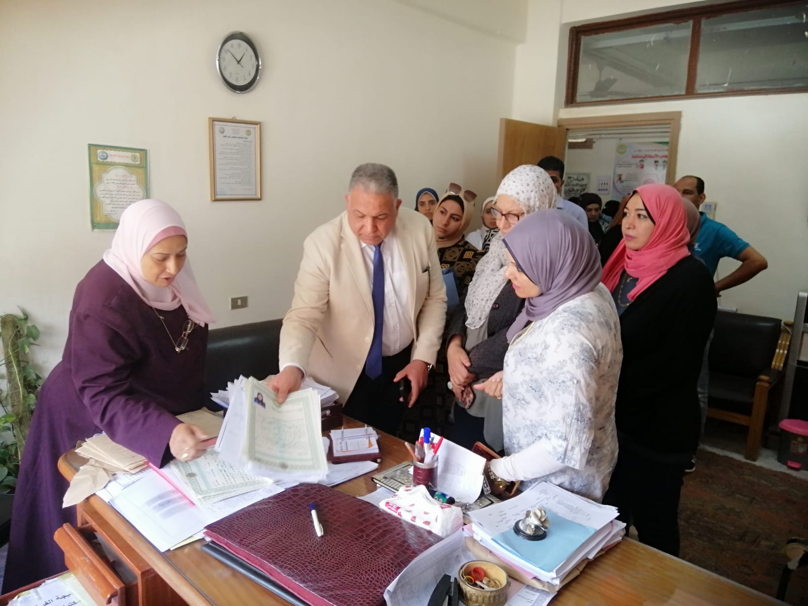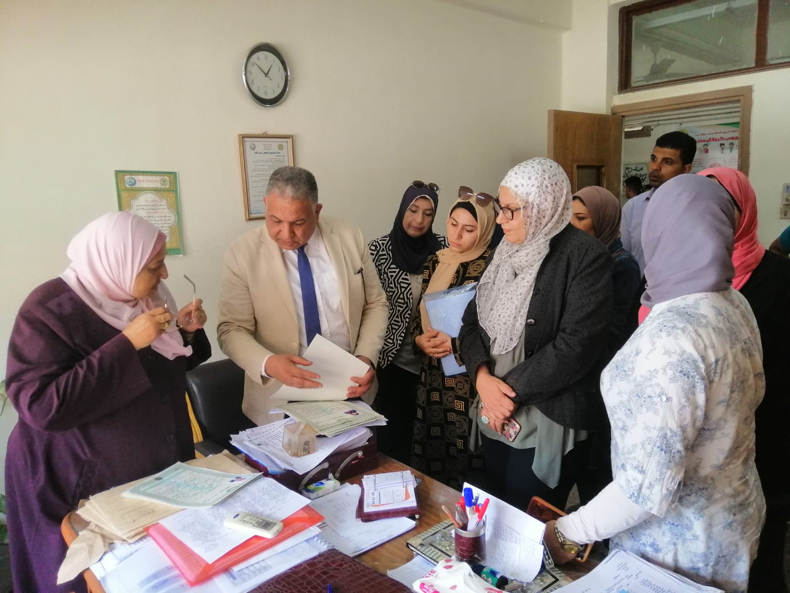 تفقد الدكتور محمد فكري خضر، نائب رئيس جامعة الأزهر لفرع البنات، كلية الدراسات الإنسانية للبنات بالقاهرة، وخلال الجولة لحظ زحامًا أمام مكتب شئون الخريجات فقام على الفور باستيضاح الأمر والوقوف على سبب الزحام، موجهًا بتيسير استخراج شهادات التخرج، واستلامها في نفس اليوم؛ تيسيرًا عليهن، خاصة أنهن يأتين من محافظات بعيدة.