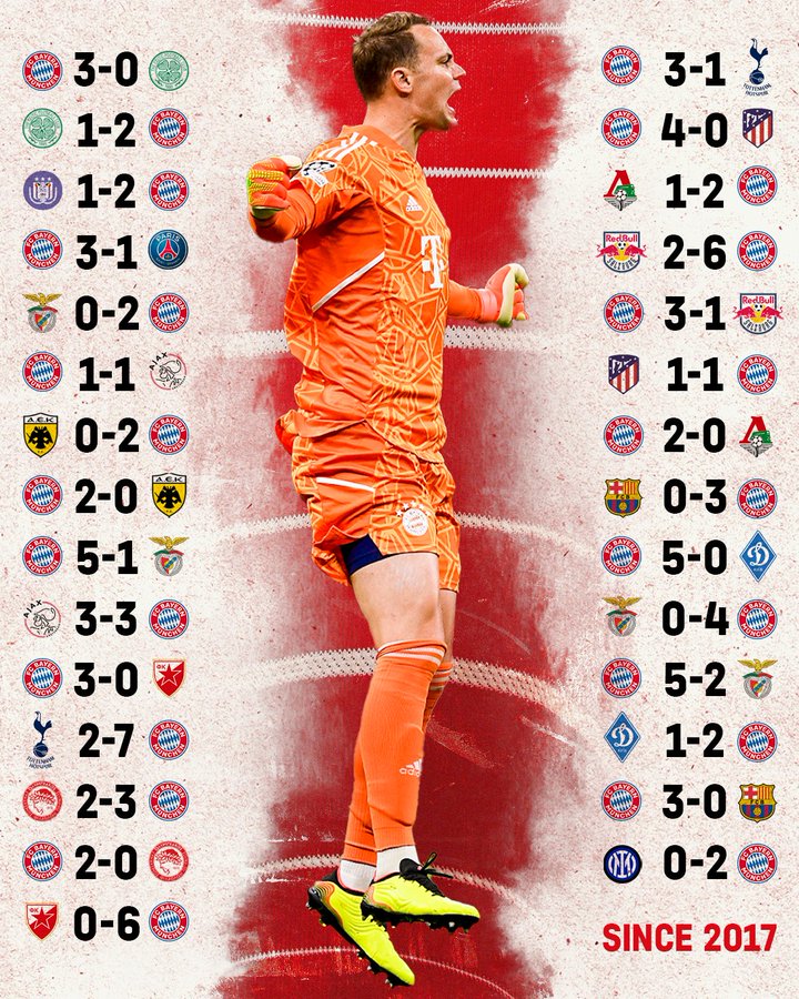 واستعرض الحساب الرسمي لبايرن ميونخ نتائج الفريق في دور المجموعات منذ عام 2017، حيث لم يخسر العملاق البافاري في 29 مباراة.