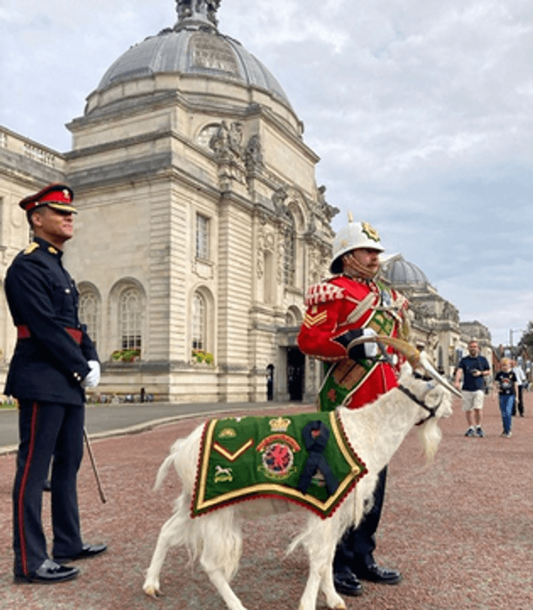 حتى إن ماعزًا من أحد الأفواج الملكية الويلزية الأخرى كان يتم إعطاؤه ما يصل إلى سيجارتين ليأكلها. لكن هذا لم يعد قائمًا الآن.