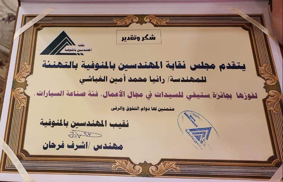 كرمتها نقابة المهندسين وتحلم بنوبل.. بنت المنوفية رانيا الغباشى تفوز بجائزة "ستيفي" في مجال صناعة السيارات