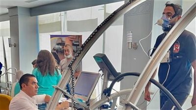 وواصل بدأنا بجهاز قياس قدرة الجهاز التنفسى والرئوى أثناء اللعب وتخلص الجسم من الأحماض التي تسبب الإجهاد، وهو جهاز فريد من نوعه اللاعب يصعد عليه وهو مرتديًا الماسك ويحاول الوصول إلى أقصى حمل بدنى لديه ومن ثم يتم تحديد القياسات.