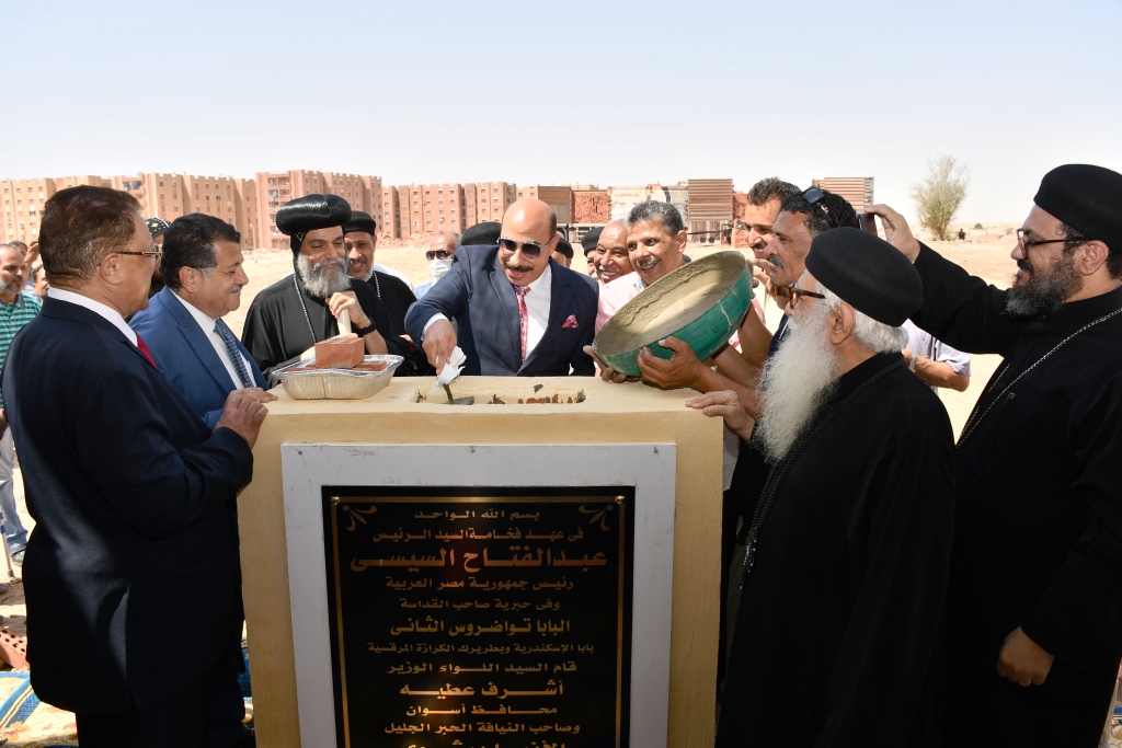وأعرب محافظ أسوان عن سعادته بمشاركة نيافة الأنبا بيشوى بوضع حجر أساس لأول كنيسة ضمن جهود الدولة للتوسع في إنشاء دور العبادة وتطويرها، وهو الذى يؤكد المبادئ والأسس الثابتة للمواطنة وأواصر التلاحم والمحبة التي تقوم عليها الجمهورية الجديدة بقيادة ربان سفينتها الرئيس عبد الفتاح السيسى.