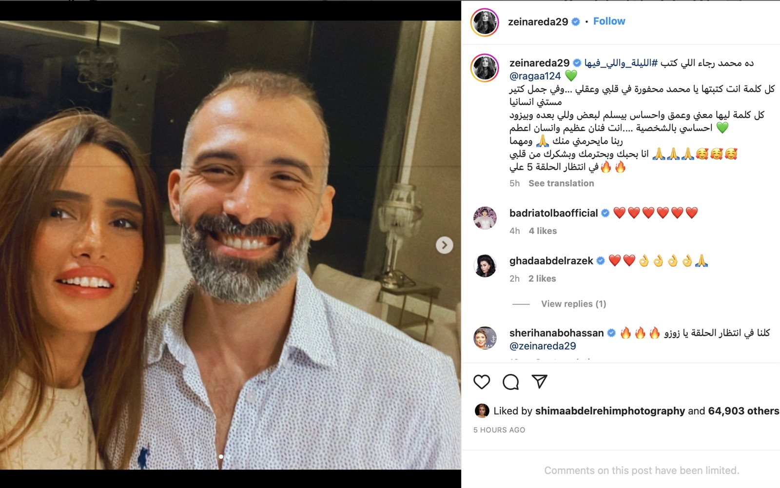 مدحت الفنانة زينة محمد رجاء مؤلف مسلسل الليلة واللي فيها عبر حسابها الرسمي على موقع تبادل الصور انستجرام، حيث نشرت صورة تجمعها بمحمد رجاء وأرفقت تعليق “ ده محمد رجاء اللي كتب #الليلة_واللي_فيها كل كلمة انت كتبتها يا محمد محفورة في قلبي وعقلي …وفي جمل كتير مستني انسانيا كل كلمة ليها معني وعمق واحساس بيسلم لبعض وللي بعده وبيزود احساسي بالشخصية ….انت فنان عظيم وانسان اعظم ربنا مايحرمني منك ومهما انا بحبك وبحترمك وبشكرك من قلبي في انتظار الحلقة 5 ”.