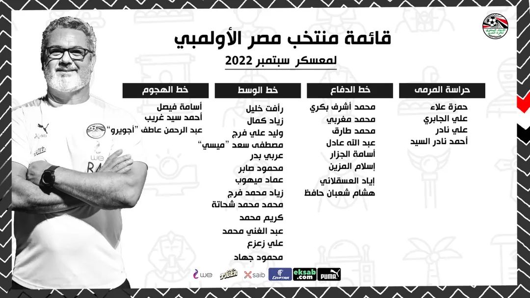 وأعلن روجيريو ميكالي، المدير الفني للمنتخب الأولمبي، قائمة معسكر سبتمبر الذي يقام في الفترة من 15 حتى 27 من الشهر الجاري بمدينة الإسكندرية استعدادًا لتصفيات أفريقيا المؤهلة لأولمبياد "باريس 2024".