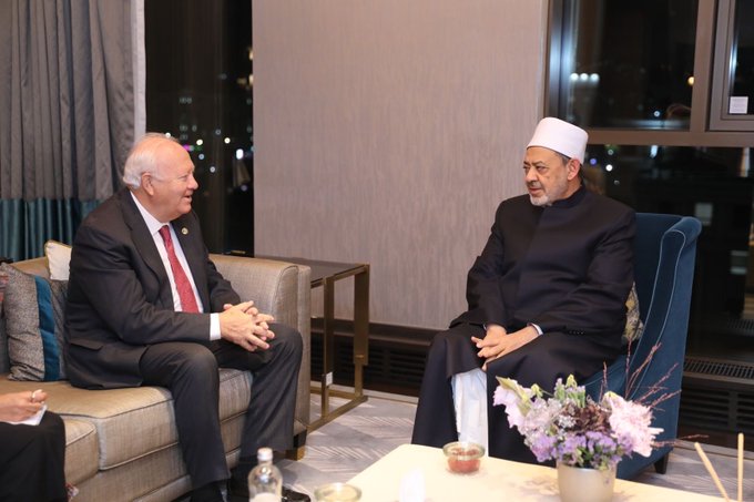 وكان فضيلة الإمام الأكبر، قد دعا خلال كلمته أمس الأربعاء، بالمؤتمر السابع لزعماء الأديان في كازاخستان، لانعقاد لقاء خاص برموز الأديان يتدارسون فيه، بصراحة ووضوح تامين: ماذا عليهم وماذا على غيرهم من القادة والسياسيين وكبار الاقتصاديين، من الواجبات والمسؤوليات حيال الكوارث الاخلاقية والطبيعية، والتي باتت تهدد مستقبل البشرية بأكملها، موضحا أن انعقاد هذا اللقاء بين قادة الأديان المختلفة في الغرب والشرق، لن يكون بالأمر الصعب أو المستحيل، حيث حدث من قبل في لقاء وثيقة الأخوة الإنسانية بين فضيلته وقداسة البابا فرنسيس.