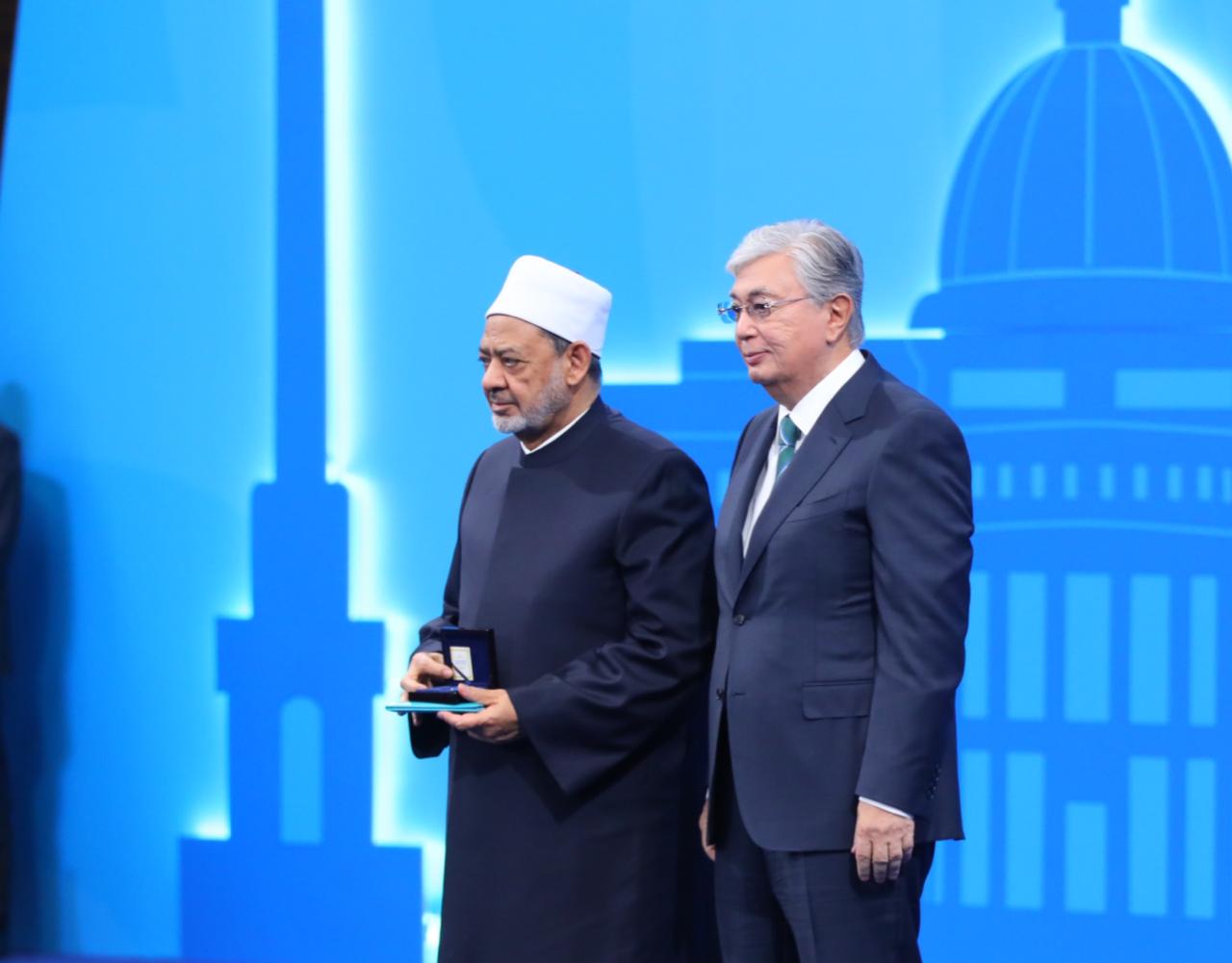 وقال الرئيس الكازاخي، يسعدني منح فضيلة الإمام الأكبر شيخ الأزهر الشريف، جائزة أستانا الدولية، لجهوده في الحوار بين الأديان، وتعزيز ثقافة الأخوة والتسامح بين مختلف الثقافات والعرقيات، لافتا إلى أن فضيلته هو الشخصية الإسلامية الأكبر والأكثر إلهاما في القضايا الإنسانية، وأن حضور فضيلته لكازاخستان هو أمر مهم ومقدر بالنسبة للجميع.